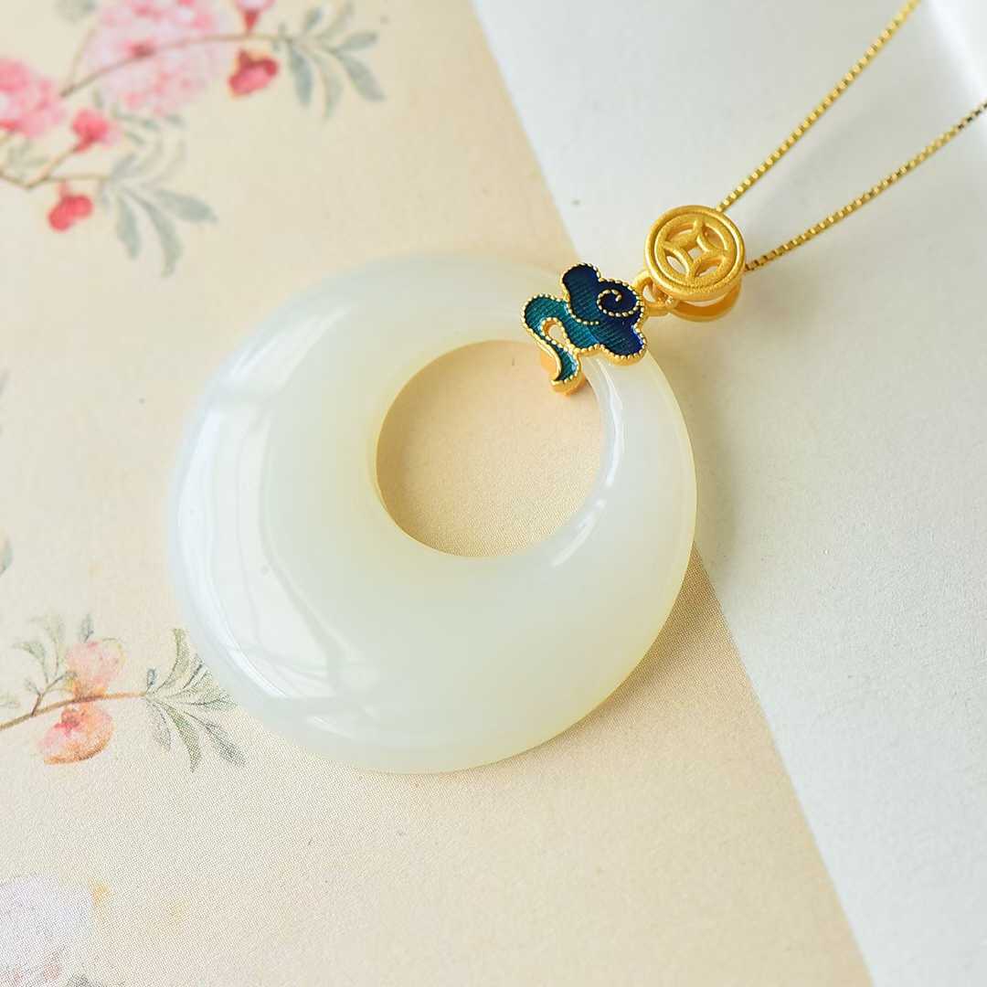 925 Silver-Inlaid Hetian Jade Pendant with "Auspicious Clouds" & "Ping'an Kou" (Peace Buckle) Design The jade is translucent and flawless, with an innovative design that makes it striking when worn.