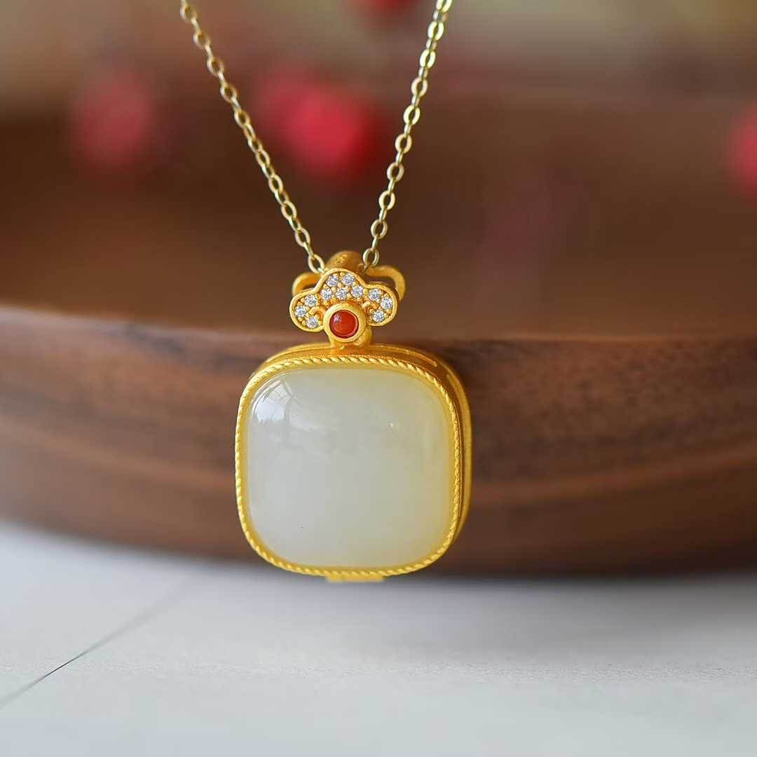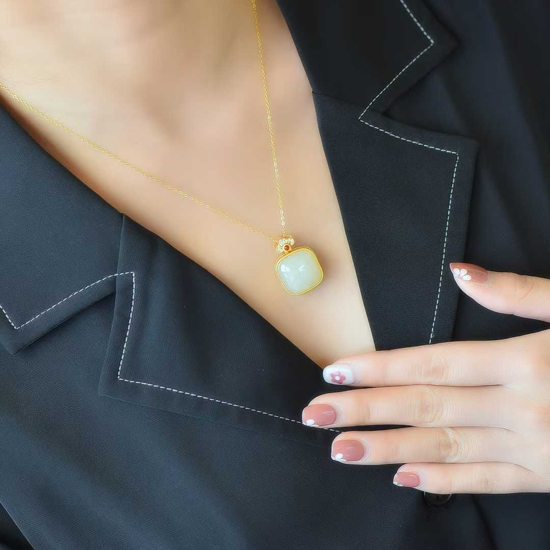 Ancient-Style Silver-Inlaid Hetian Jade Sachet Box