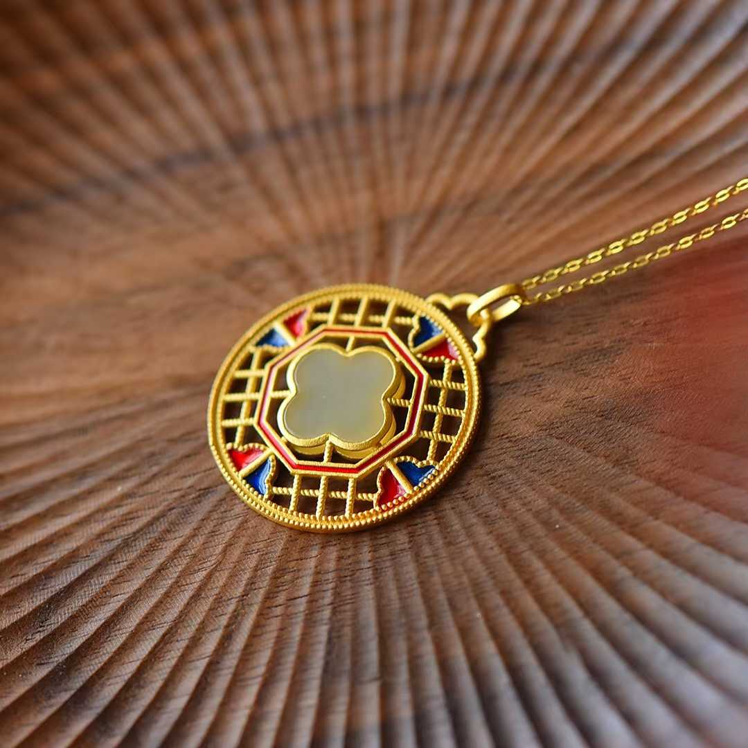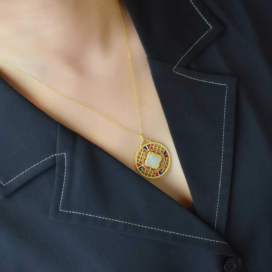 925 Silver Inlaid Nephrite Enamel Four-Leaf Clover Pendant
