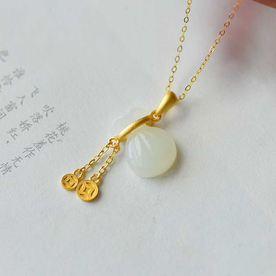 This exquisite pendant features intricate vintage-style silver craftsmanship, inlaid with smooth nephrite in a traditional "Money Bag" design. The plain silver finish highlights the natural beauty of the materials, while the motif symbolizes wealth and prosperity, making it a meaningful accessory rich in cultural heritage.