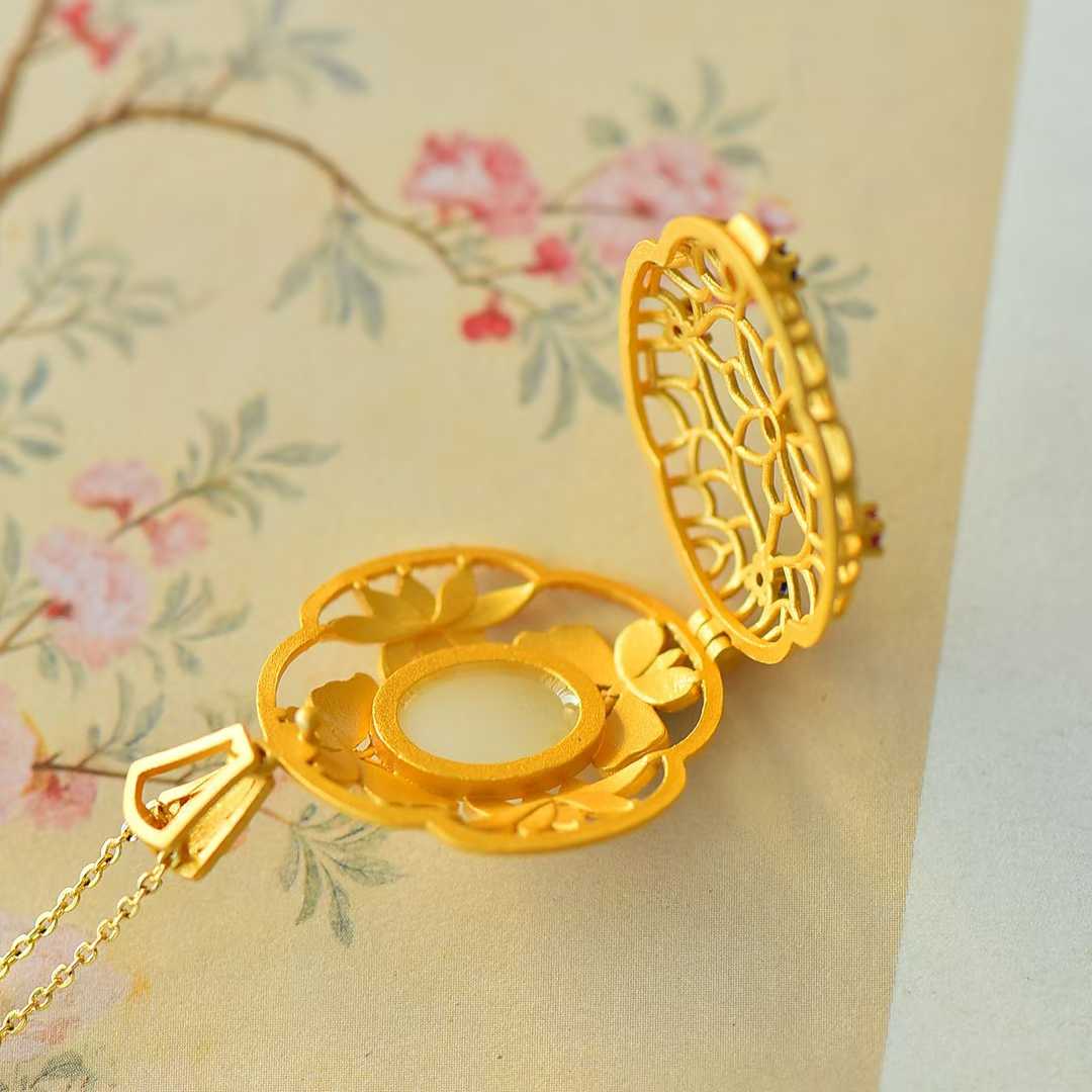 925 Silver-Inlaid Hetian Jade Pendant with Enameled Zircon, "Two Butterflies Flying Together" Design & Scent Sachet Compartment   One side features a butterfly pattern painted with enamel craftsmanship, while the other side adopts a hollow-carved design. It has a unique and one-of-a-kind style, with exquisite craftsmanship and a classic, elegant vibe.