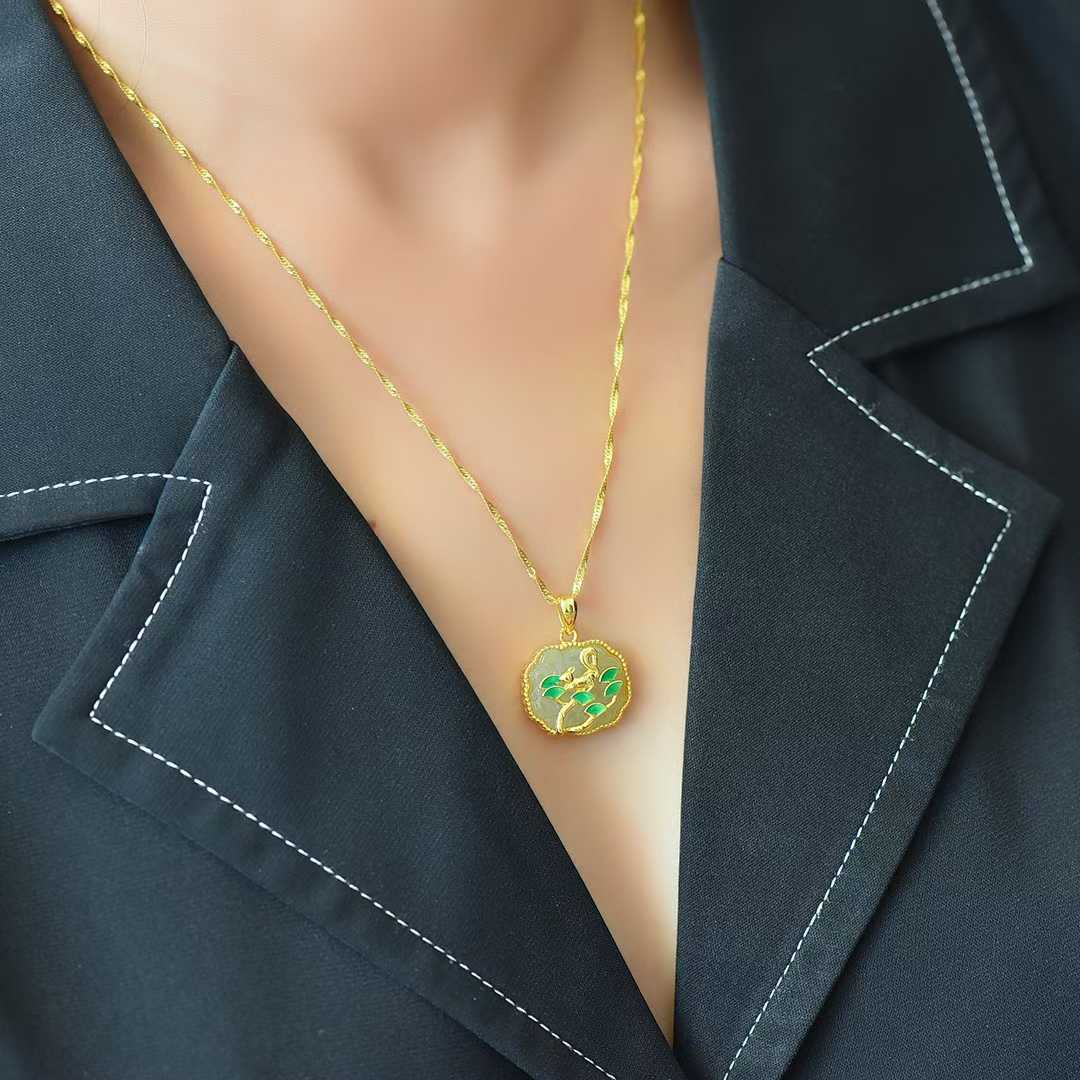 This charming pendant features an S925 silver setting inlaid with smooth nephrite, depicting a cute squirrel on a tree. The design symbolizes preparedness and resourcefulness, making it a delightful accessory for nature lovers or as a unique gift.