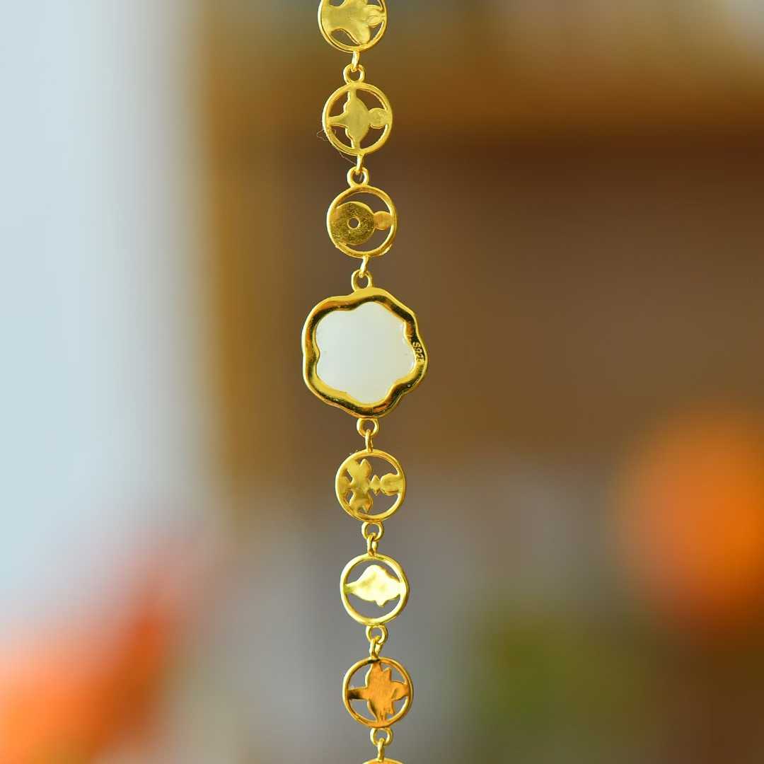 This exquisitely crafted bracelet merges floral elegance, vibrant enamel, and sacred symbolism, made from 925 sterling silver, inlaid with premium Hetian nephrite and colored enamel.Its design centers on two richly meaningful elements: blooming roses (a universal symbol of love, beauty, and passion) and the Eight Treasures (classic Chinese auspicious motifs representing prosperity, protection, and good fortune), creating a piece that balances romance with cultural depth.