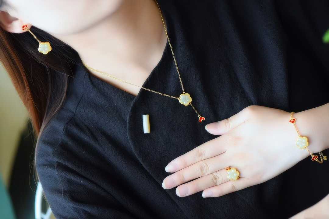 925 Silver Inlaid Hetian Jade Five-Petal Flower Four-Piece Set