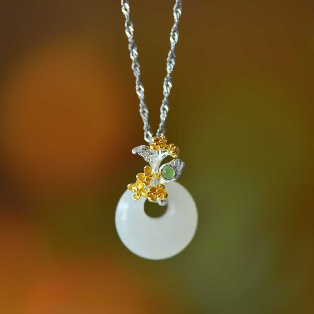 925 Silver Inlaid Hetian Nephrite "August Osmanthus (Twelve Flower Gods)" Jewelry Set