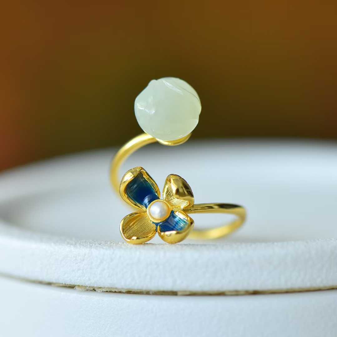 This culturally rich jewelry set blends traditional Chinese craftsmanship with time-honored auspicious symbolism, crafted from ancient-style silver and inlaid with premium Hetian nephrite.Its core design revolves around the "Lotus & Annual Auspiciousness" theme— integrating two iconic elements: lotus (a symbol of purity, nobility, and eternal good fortune in Chinese culture) and the wish for "annual auspiciousness" (meaning blessings and smoothness throughout every year)— typically including a pendant, bracelet, and earrings for a cohesive, elegant look.