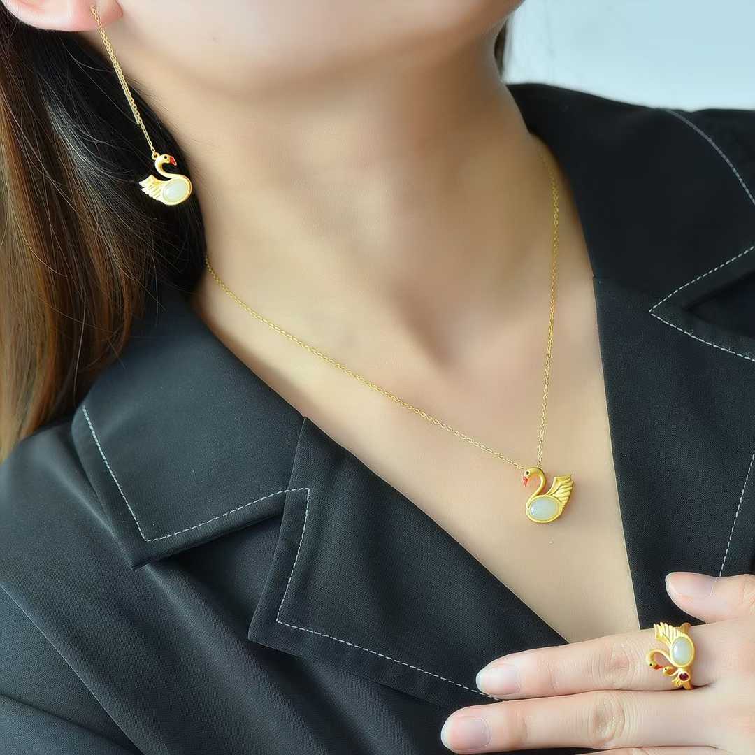 This elegant three-piece jewelry set blends timeless craftsmanship with graceful symbolism, crafted from ancient-style silver (replicating traditional metalworking techniques) and centered on the serene swan motif— a universal symbol of beauty, loyalty, and elegance. The set includes a pendant, earrings, and a bracelet, each piece capturing the swan’s poised essence through refined design