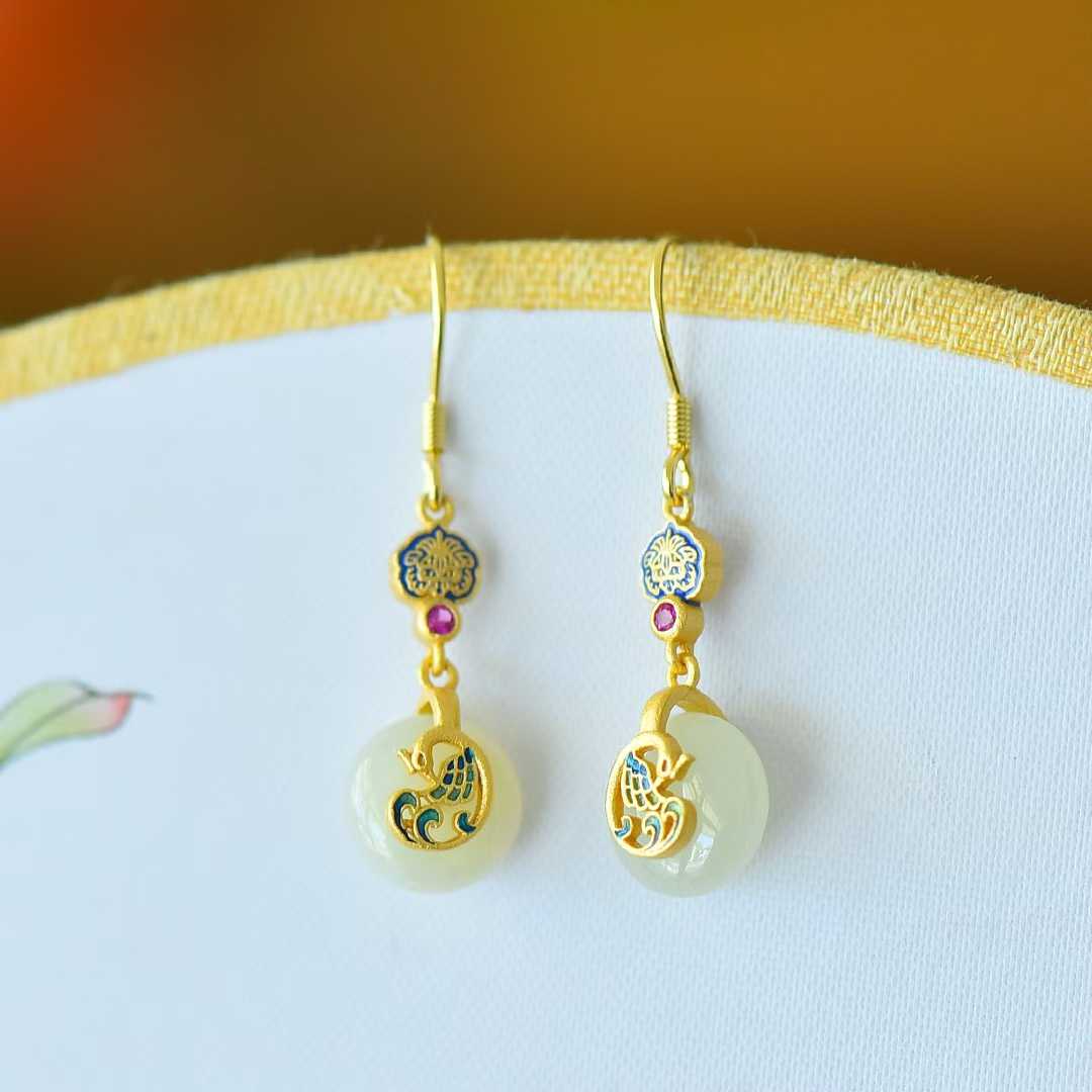 This luxurious and auspicious jewelry set merges classic Chinese symbols of fortune and safety with exquisite craftsmanship, crafted from S925 sterling silver and inlaid with premium Hetian nephrite.Its core design revolves around two iconic elements: the Peace Buckle (a smooth circular pendant/buckle motif symbolizing wholeness, safety, and endless good fortune) and the theme of "Prosperity" (embodied by delicate silver accents and the gentle luster of Hetian nephrite) The set typically includes a Peace Buckle pendant, a matching bracelet, and earrings, creating a cohesive, elegant look for versatile wear.