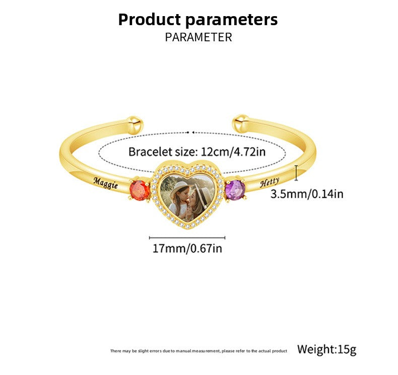 - Captura tus momentos más preciados y llévalos cerca de tu corazón con nuestra Pulsera de Corazón con Foto Personalizada. Más que un simple accesorio, es un libro de cuentos que transforma tus fotos favoritas en una joya atemporal.
