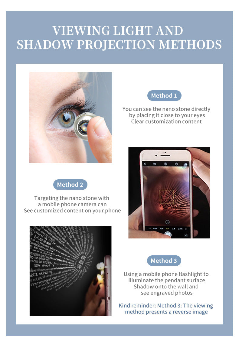 - No es solo un accesorio de moda, sino también un sustento emocional. En el aniversario, personaliza la foto de su primer encuentro y regálasela a tu pareja, para que este recuerdo se convierta en un romance único; si tu hijo/a viaja lejos, convierte el retrato familiar en un collar y regálaselo, para que la nostalgia se convierta en un sentimiento de cercanía. Al usarlo, también puedes despertar buenos recuerdos en cualquier momento cuando estés cansado/a y sacar fuerzas para seguir adelante.