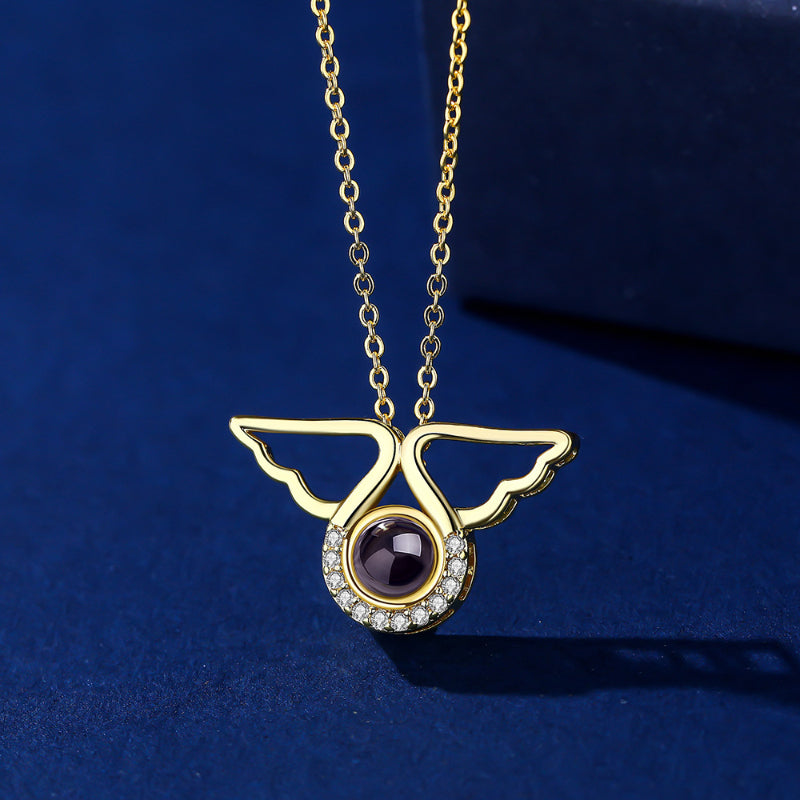 - Eleva tu sentimiento y estilo con nuestro Collar de Alas de Ángel con Proyección Fotográfica, una pieza celestial que combina a la perfección la elegancia divina con la nostalgia personal. No es solo un collar: es un abrazo portátil de amor, protección y momentos preciados.