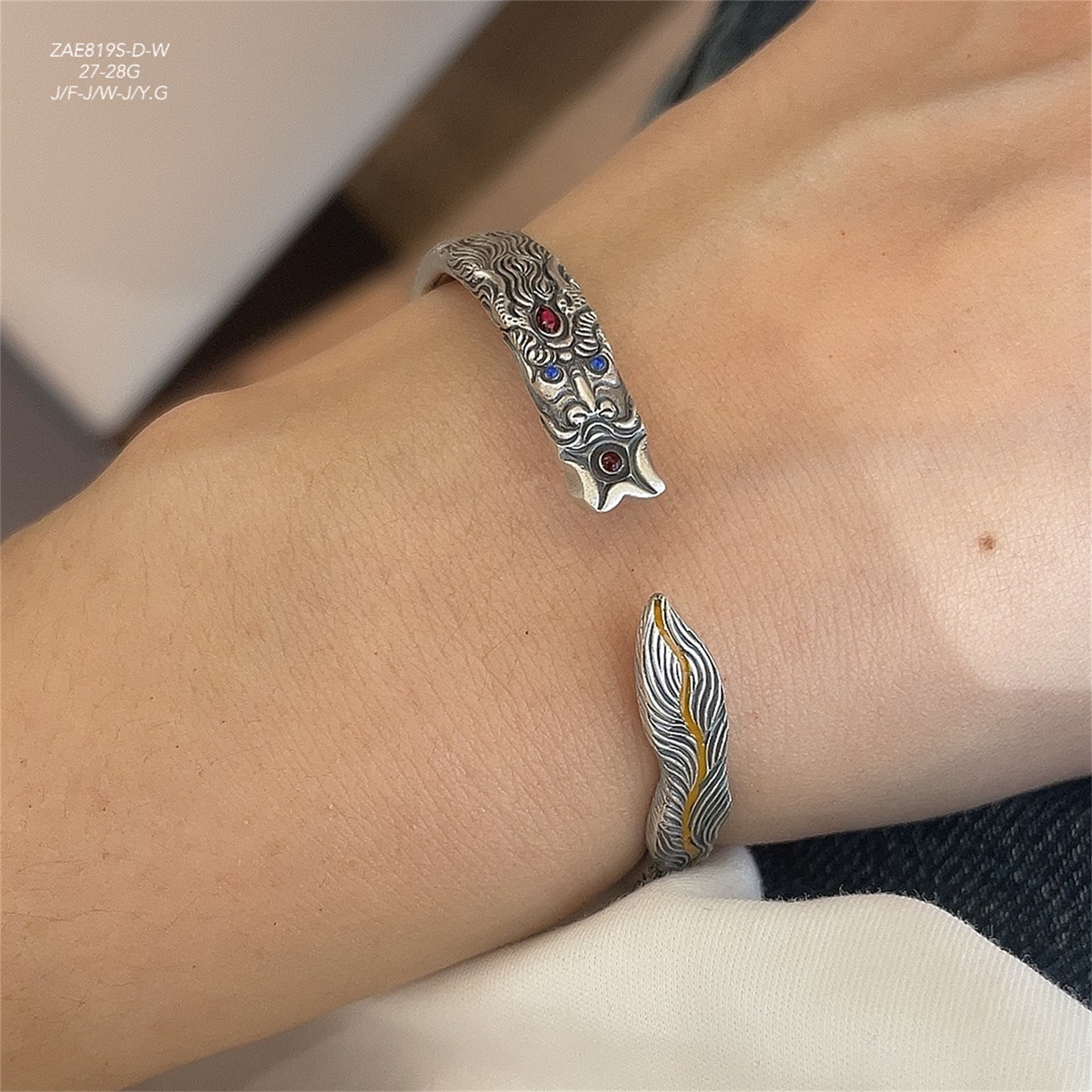 - Ya sea que te vistas para un evento especial o que le des un toque de elegancia a tu look diario, esta pulsera de plata de ley abierta con dragón jugando con perla sin duda llamará la atención. Es una pieza única y significativa que se convertirá en un tesoro de tu colección de joyas.