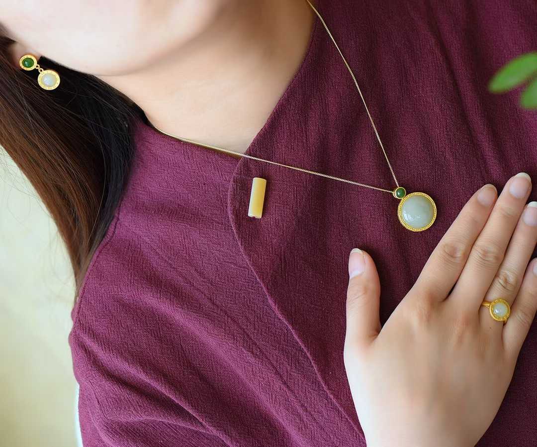 925 Silver Inlaid Hetian Jade Bulgari Set Exquisite craftsmanship and simple yet stylish design