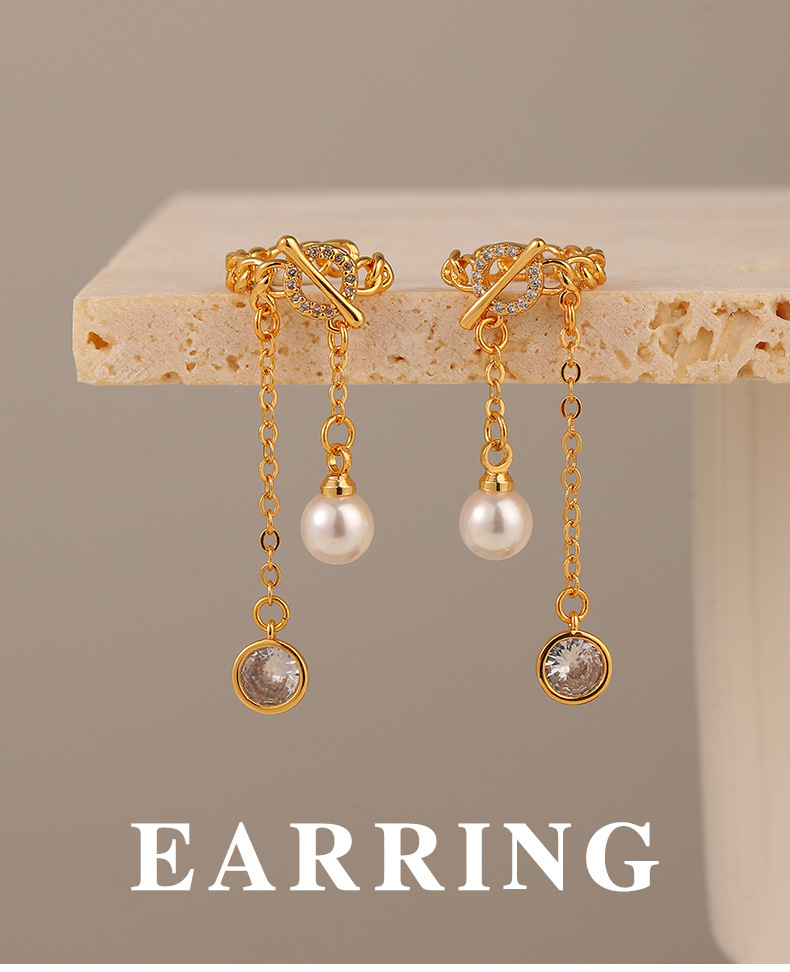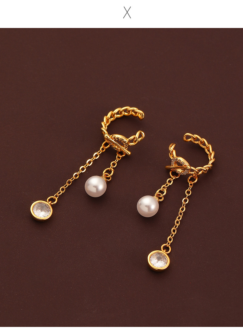 High-grade pearl ot buckle tassel ear bone clip non-pierced earrings