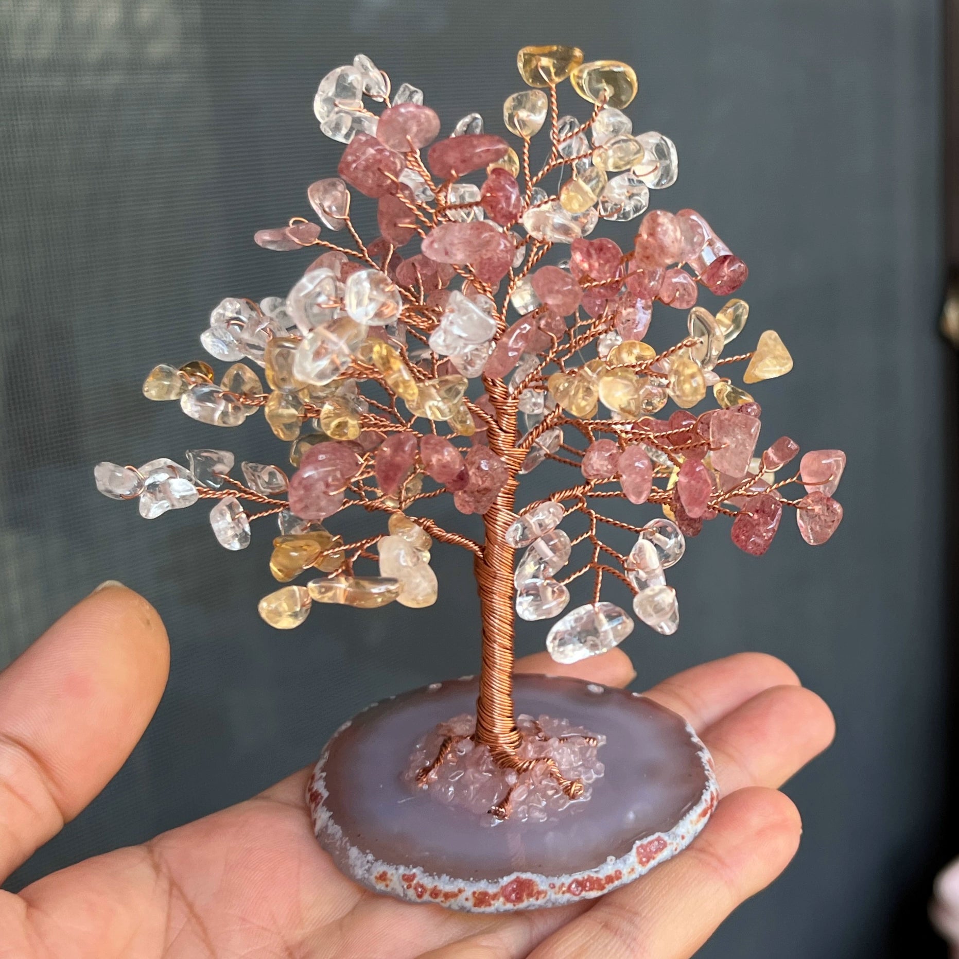 - Crafted from genuine natural crystals, each tree is a work of art. The branches, adorned with a variety of crystals, create a mesmerizing display. Clear quartz, known for enhancing clarity and focus, pairs with citrine, the "merchant's stone," which radiates a warm, golden glow believed to draw in wealth.