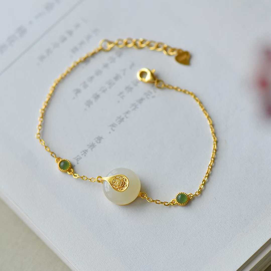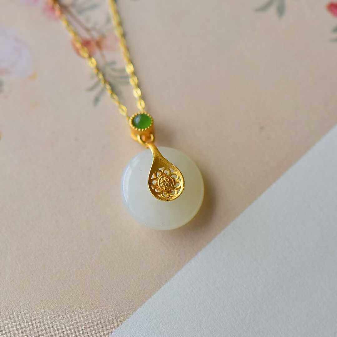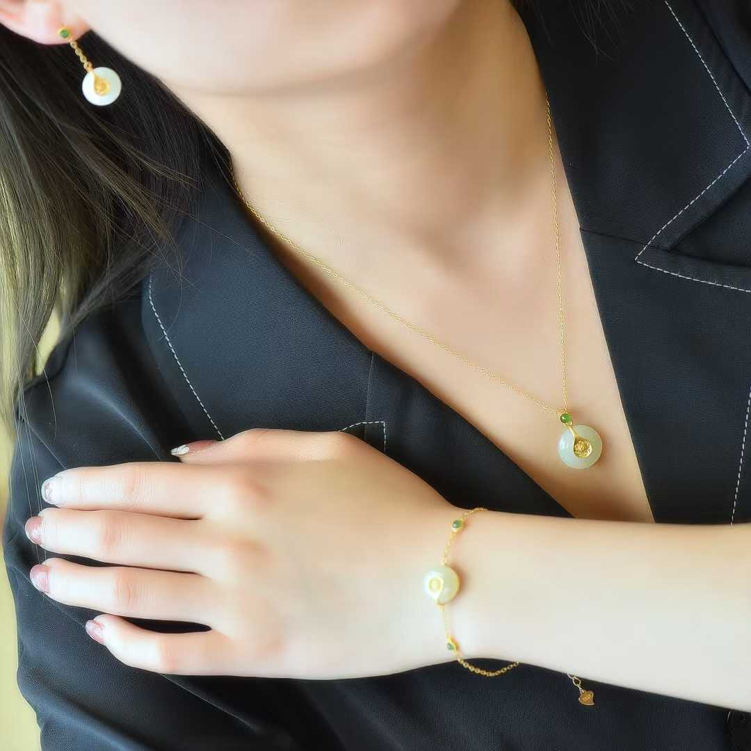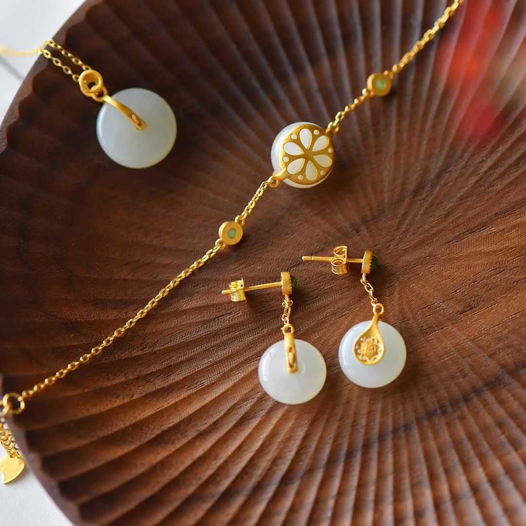 Traditional Silver-Inlaid Hetian Jade "Ping'an Kou" Three-Piece Set
