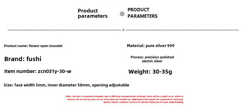 - This bracelet features exquisitely designed flower patterns. Each flower is a work of art, with petals that seem to unfurl with a delicate grace. The craftsmanship is so precise that you can almost feel the softness of the blossoms. These floral accents bring a sense of freshness and vitality, making the bracelet a vibrant and charming accessory.