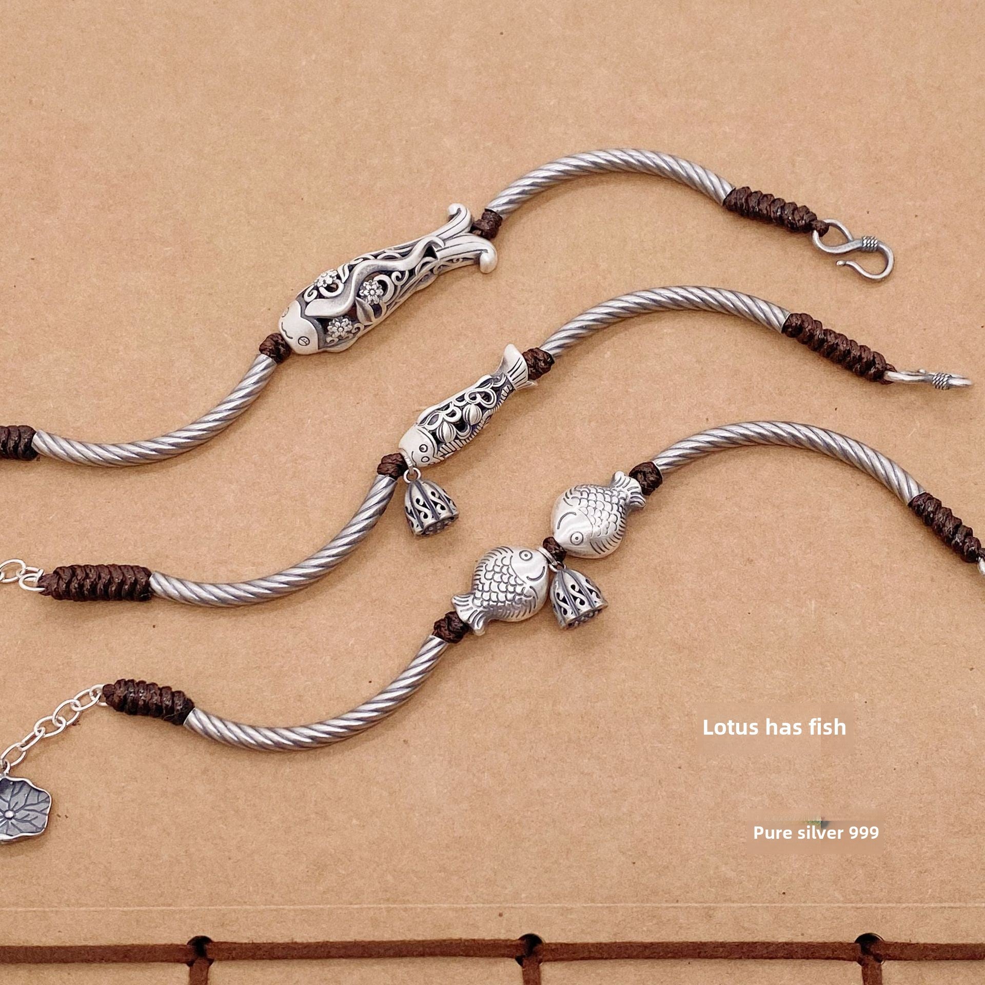 • Embrace the ethnic charm and bring good luck with our Ethnic style lucky fish sterling silver bracelet. Order yours today and add a touch of magic to your wrist.