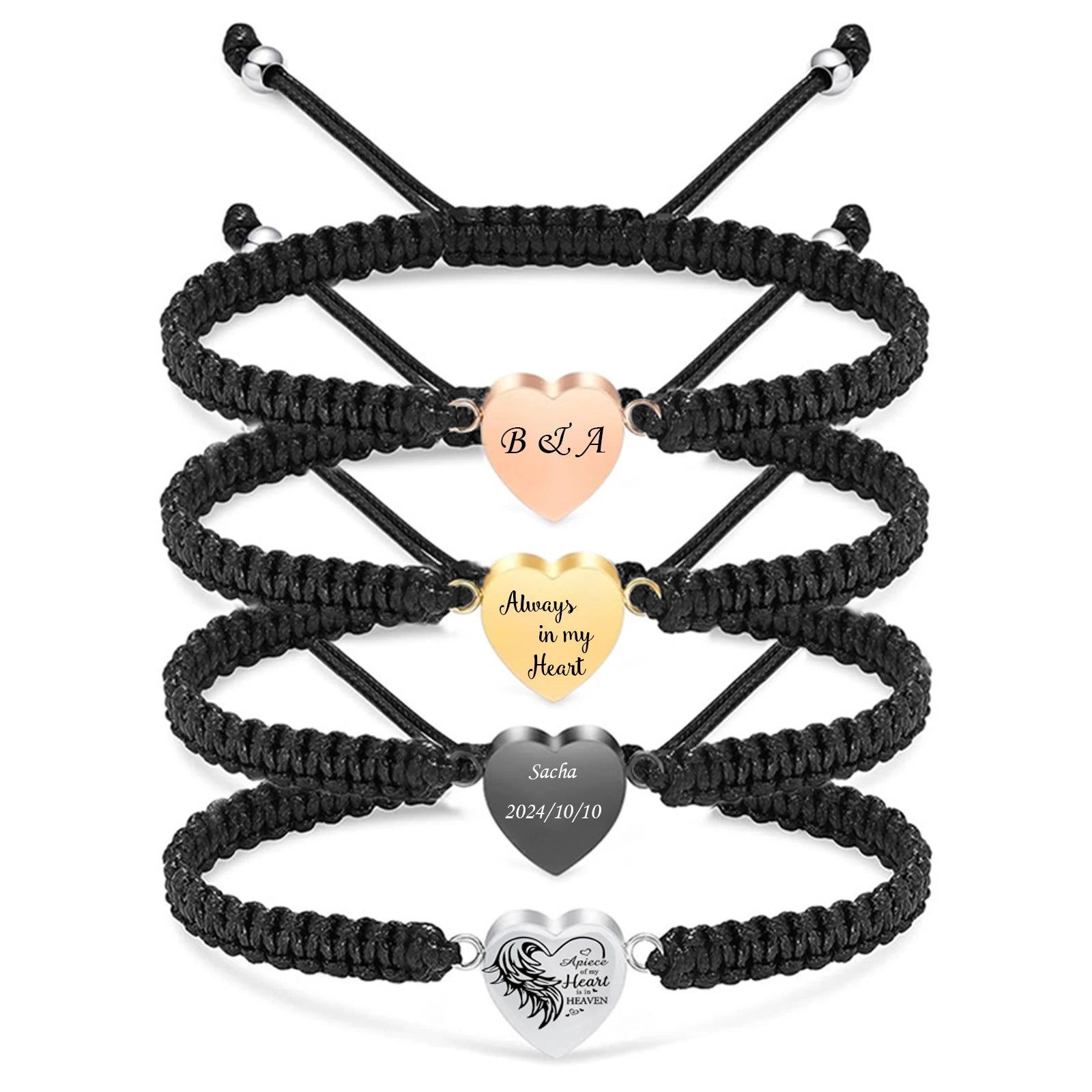 - Indulge in a timeless symbol of affection with our Engraved Heart-Shaped Woven Rope Bracelet. Blending romantic charm, personalized elegance, and meticulous craftsmanship, this bracelet is more than an accessory—it’s a heartfelt expression of love and style.