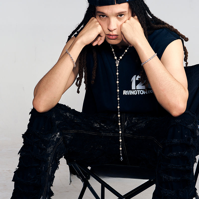 - At first glance, you'll be captivated by the long strand of lustrous pearls that form the base of this necklace. These pearls, carefully selected for their size, shape, and iridescent sheen, bring a touch of sophistication. Each one is a natural wonder, exuding a timeless charm that has been cherished for centuries. But this is no ordinary pearl necklace. We've given it a distinct hip - hop twist.
