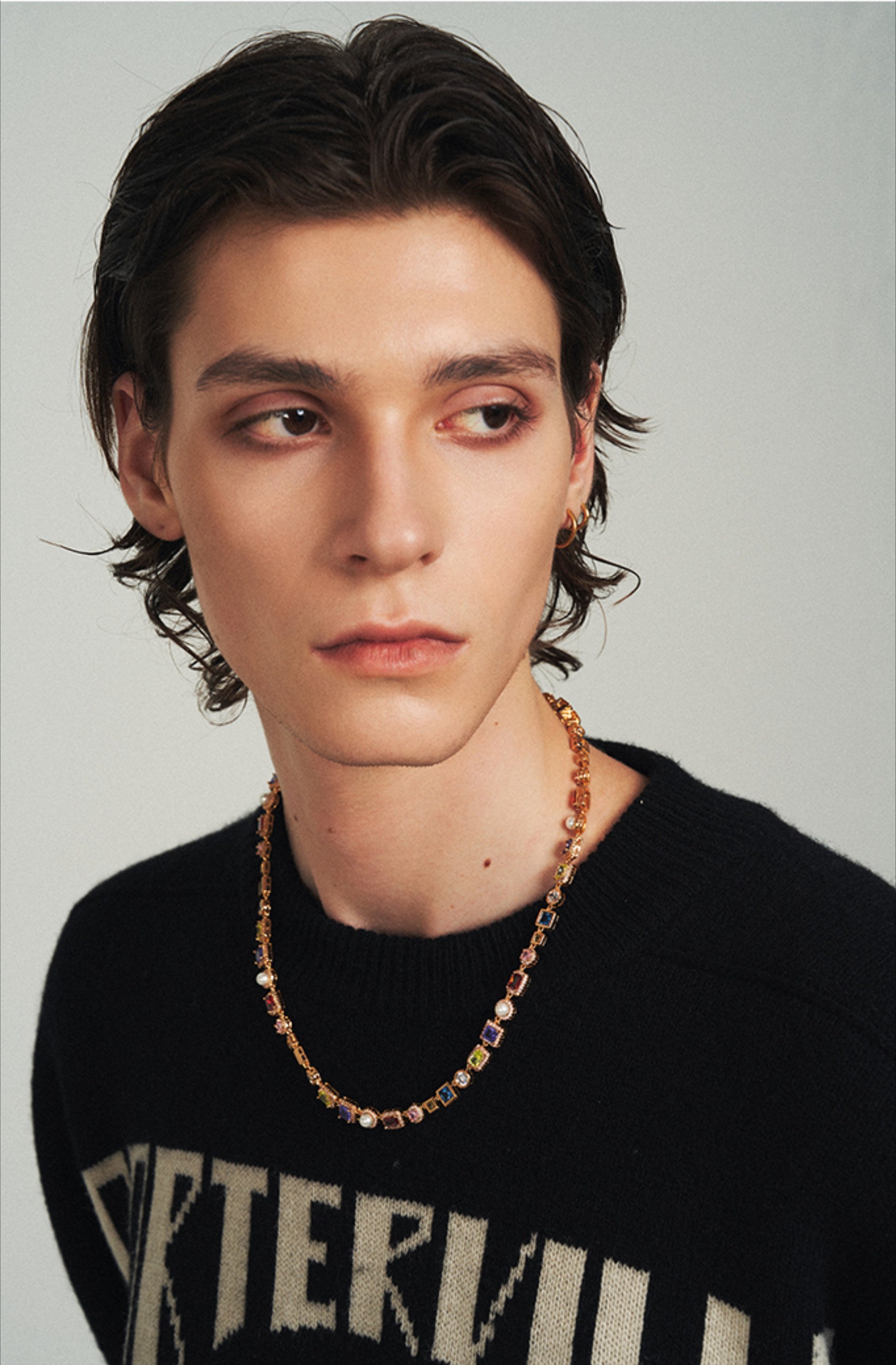 Colored diamond pearl necklace