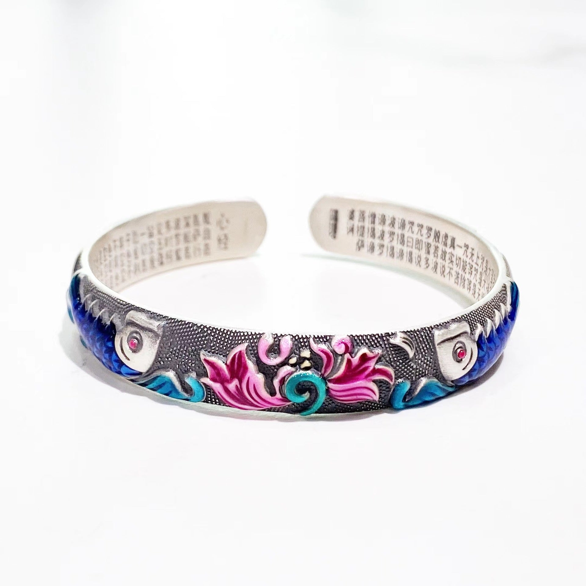 - Behold the enchanting Enamel Carp Heart Sutra Sterling Silver Bracelet, a true masterpiece that combines artistry and spirituality.