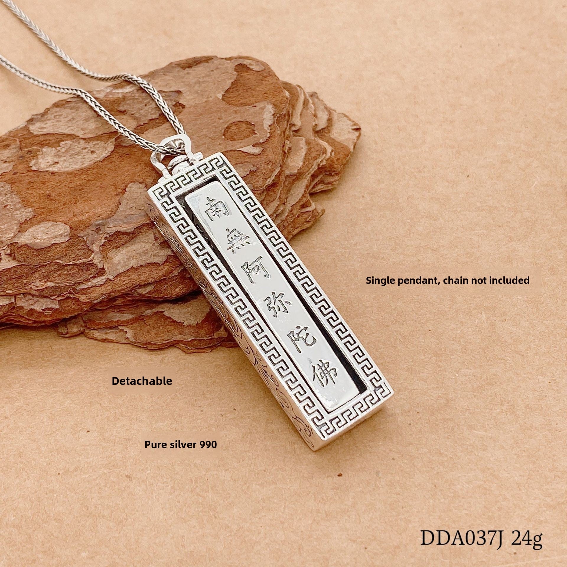 - Crafted with precision and care, the sterling silver pendant shines with a lustrous glow. The intricate detailing of the ancient scriptures adds a touch of sophistication and charm.