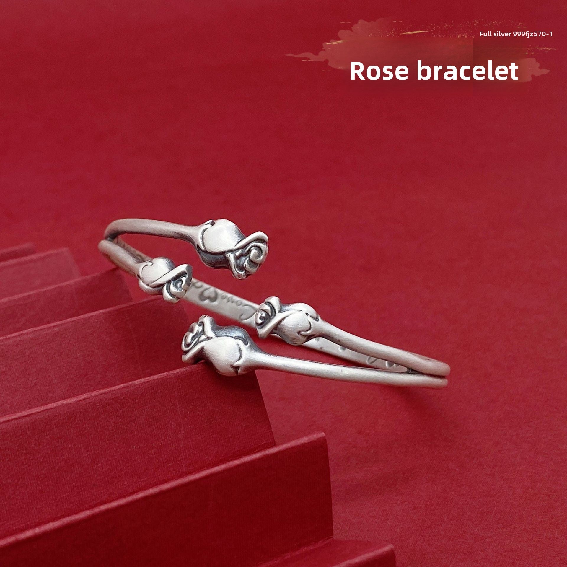 - This bracelet is crafted with meticulous attention to detail. The sterling silver shines with a soft luster, enhancing the beauty of the intricately designed roses. In Chinese culture, roses are often associated with beauty, love, and prosperity. The addition of the word "rich" further emphasizes the idea of abundance and good fortune.