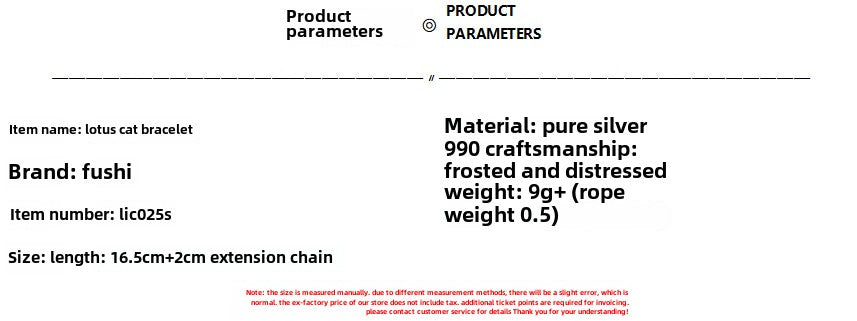 Chinese style lotus cat sterling silver bracelet