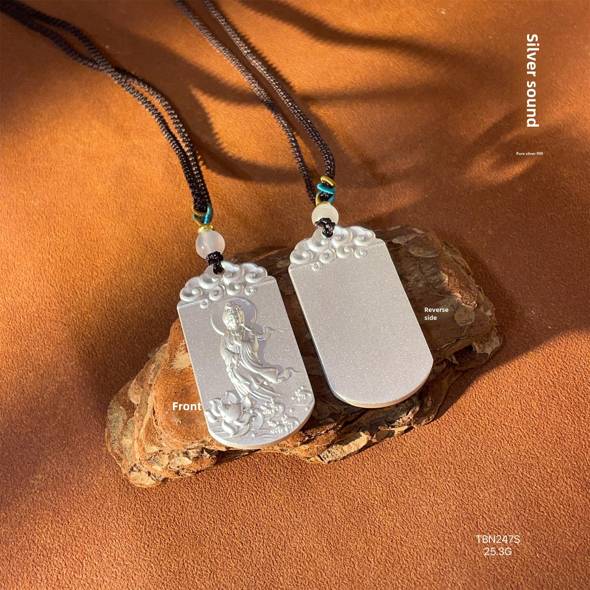 - This exquisite piece of jewelry features a stunning sterling silver pendant in the form of Guanyin, the Bodhisattva of Compassion. Crafted with precision and care, the pendant showcases intricate details and a graceful design that is truly captivating.