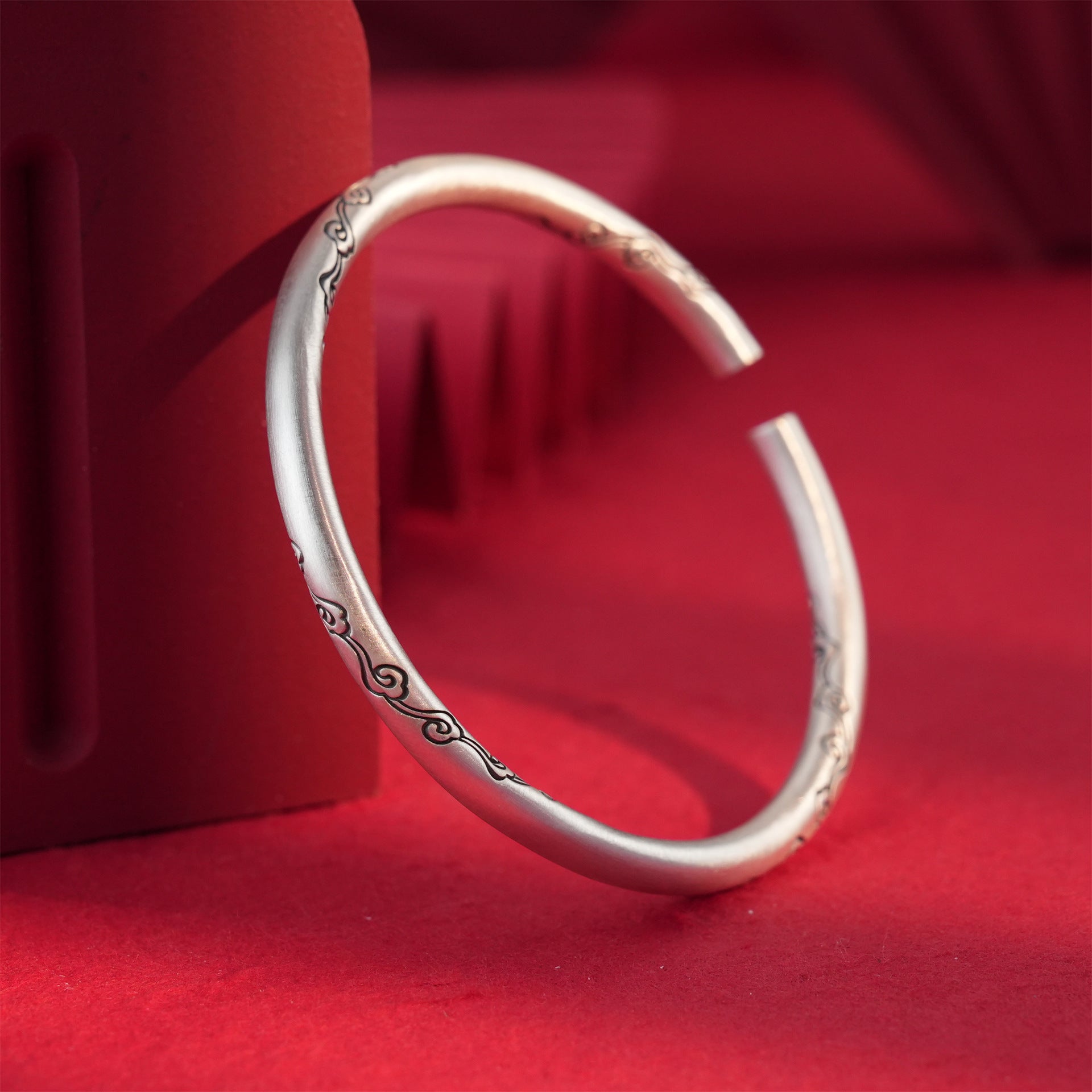- This extraordinary piece of jewelry is a fusion of elegance and tradition. The sterling silver bracelet features a rotating design with delicate auspicious cloud motifs, adding a touch of mystique and grace.