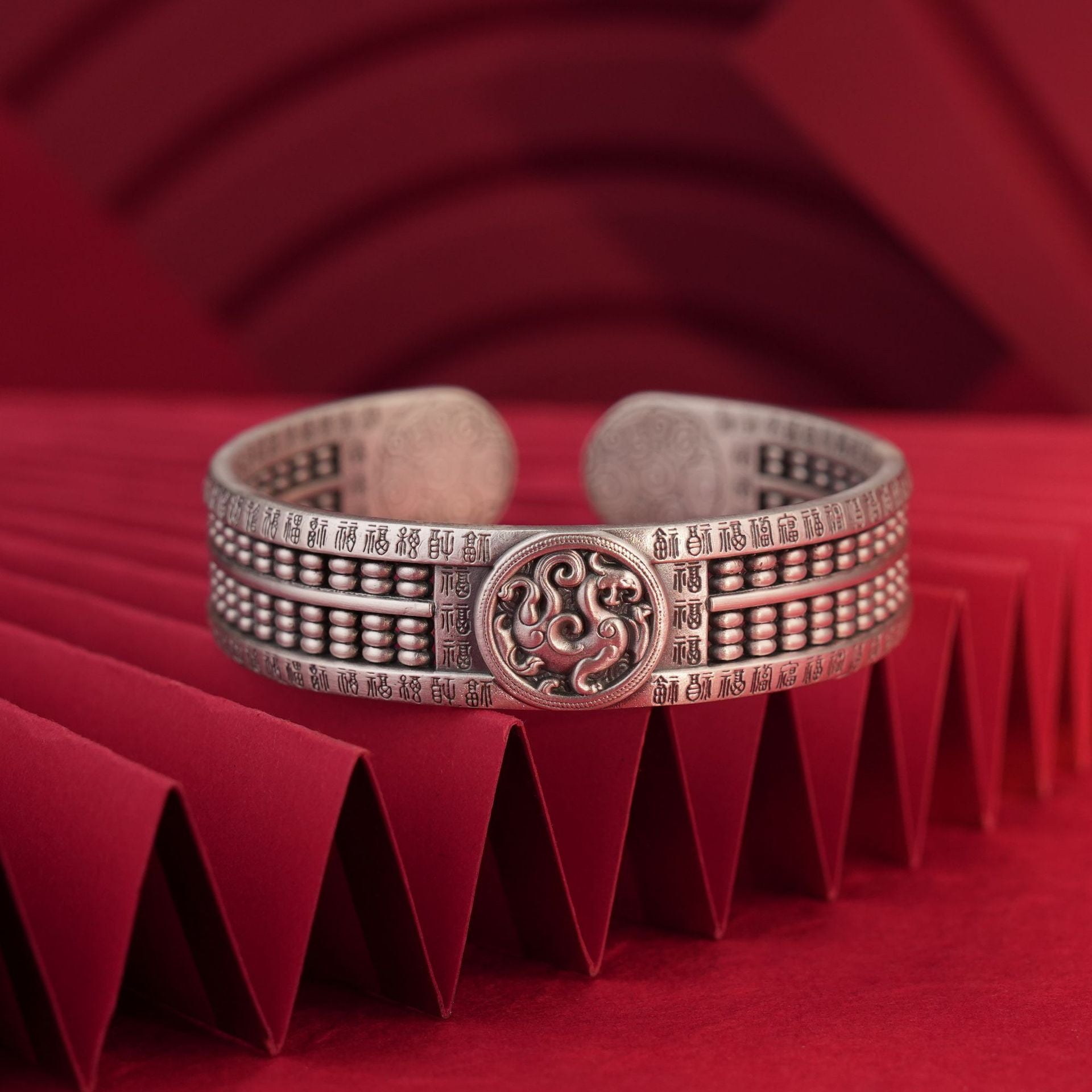 - This remarkable piece of jewelry is a true work of art. Crafted from high-quality sterling silver, it features a beautifully designed abacus motif that pays homage to ancient Chinese culture.