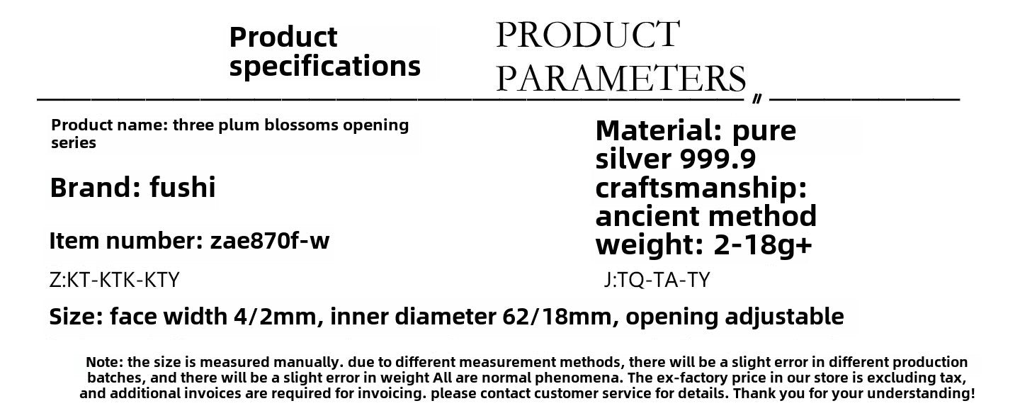 - The sterling silver base exudes a timeless elegance, while the delicate plum blossom design adds a touch of grace and femininity. The plum blossom, a symbol of resilience and beauty, is intricately crafted to capture its essence.