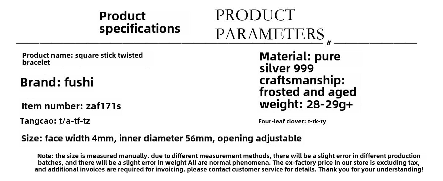 Chinese style square stick twisted wave sterling silver bracelet
