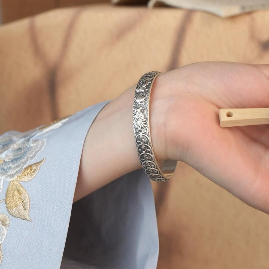 - This bracelet is a work of art. The two majestic dragons, intricately detailed, seem to come alive on the sterling silver surface. They represent power, wisdom, and good fortune, making this bracelet not just an accessory but a symbol.