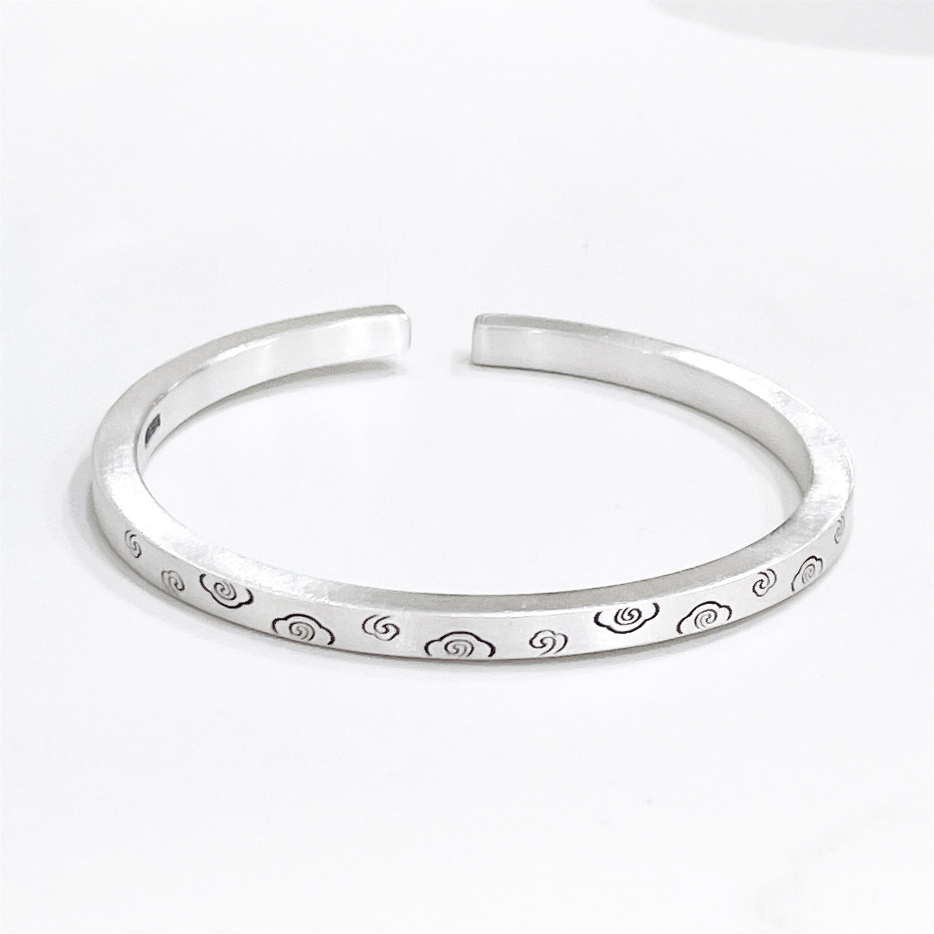 - This bracelet is crafted with meticulous attention to detail. The sterling silver shines with a soft luster, enhancing the beauty of the intricate Chinese patterns. From delicate floral motifs to symbolic designs, each pattern tells a story and adds a touch of cultural richness.