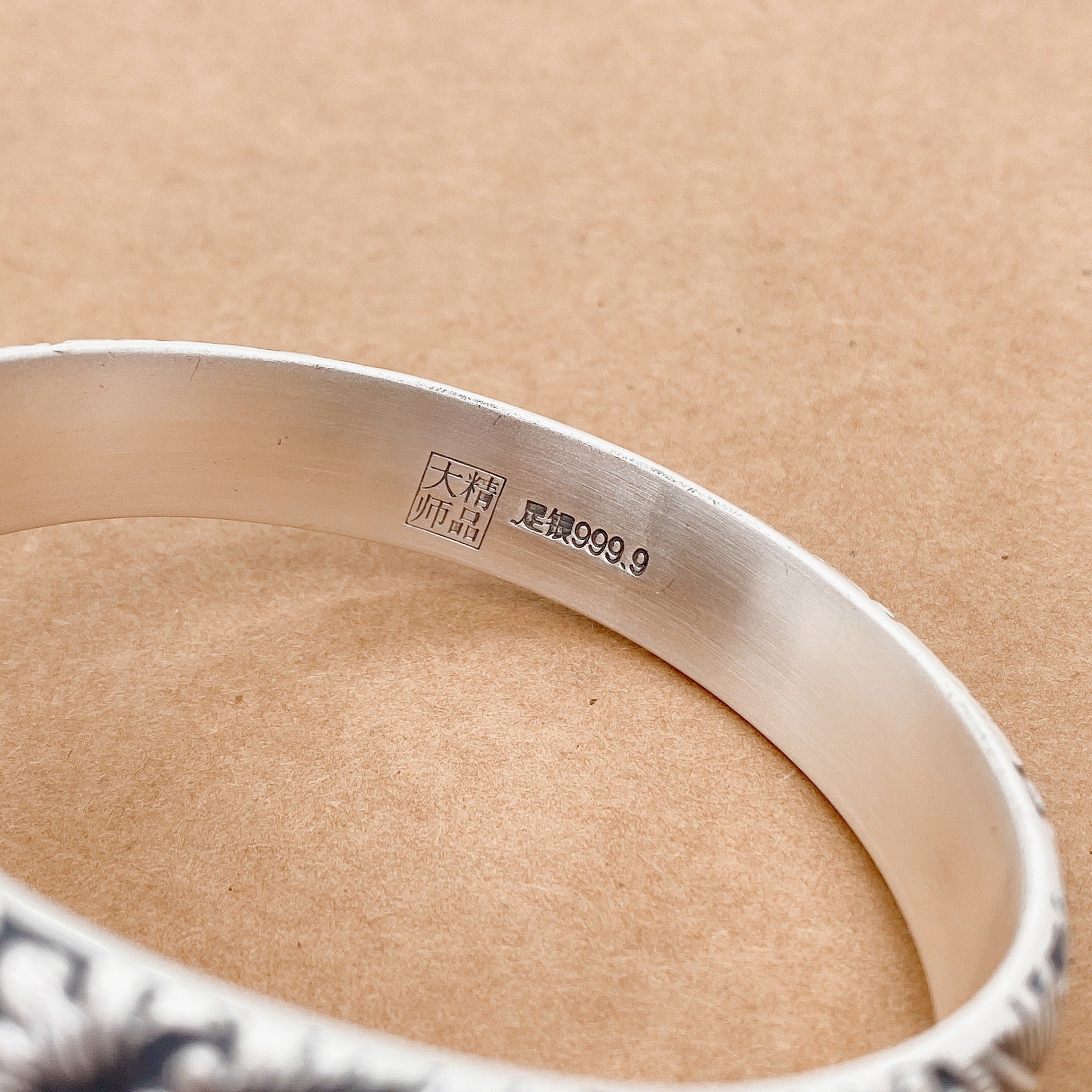 - The phoenix, a symbol of beauty, power, and rebirth in Chinese culture, is intricately detailed on the bracelet. Surrounded by delicate flowers, it creates a scene of elegance and charm.