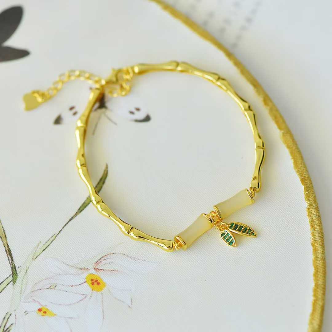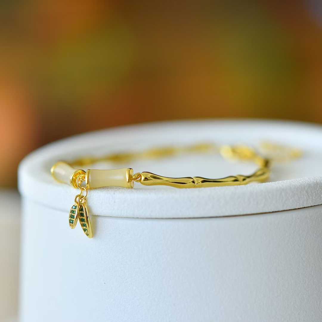 The matching jade and emerald green leaf pendant, seemingly growing naturally from the bamboo, exudes a fresh and lively air. Whether adding a touch of elegance to simple everyday outfits or as the finishing touch to a Chinese-style outfit, it's perfectly suited to wearing. It feels like the tranquility of the Jiangnan bamboo forests and the sophistication of modern aesthetics are combined on your wrist.