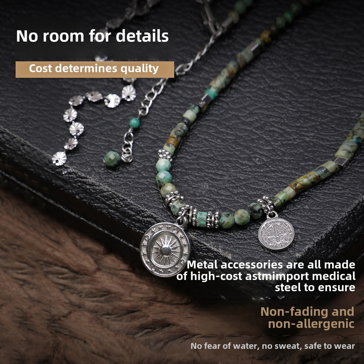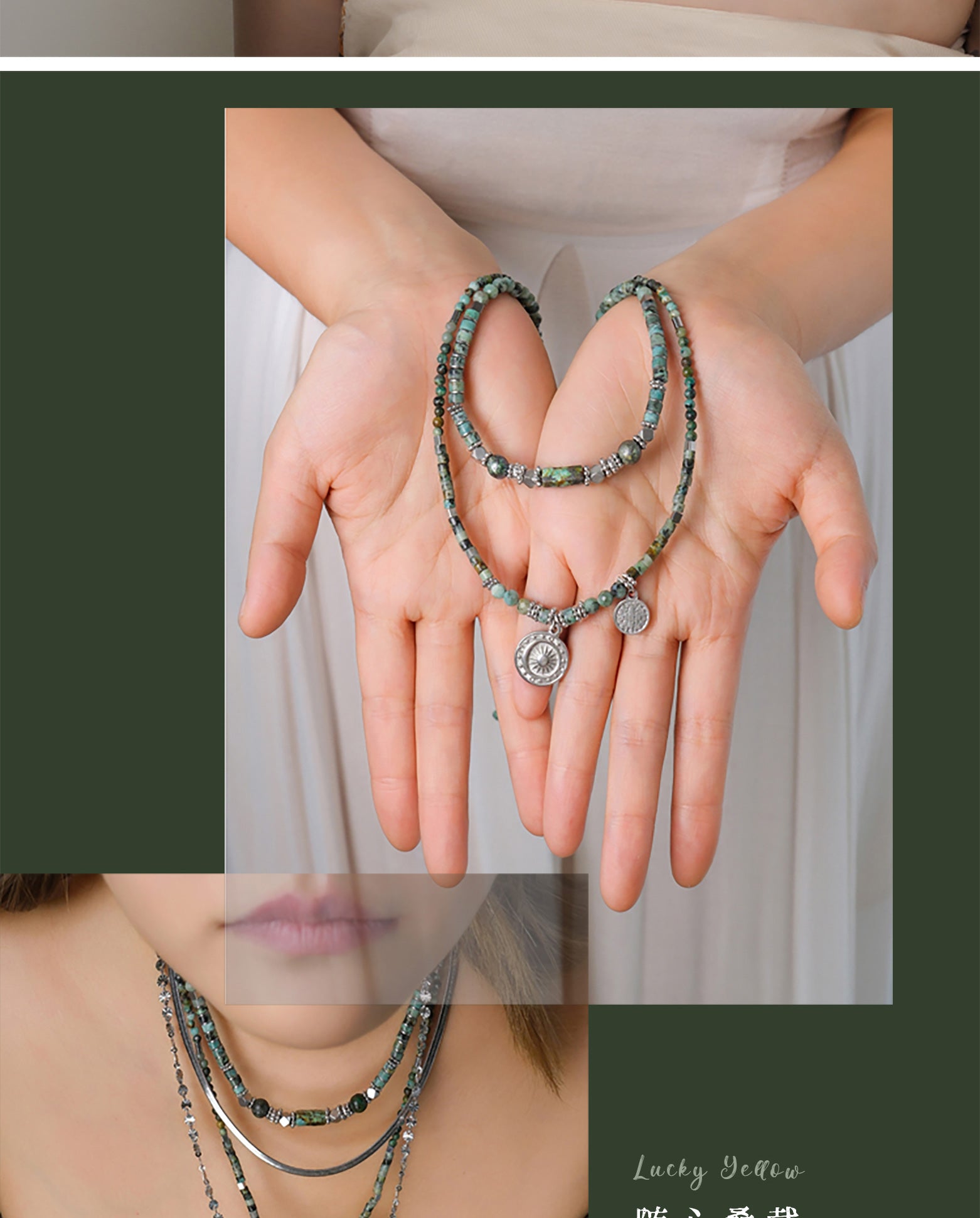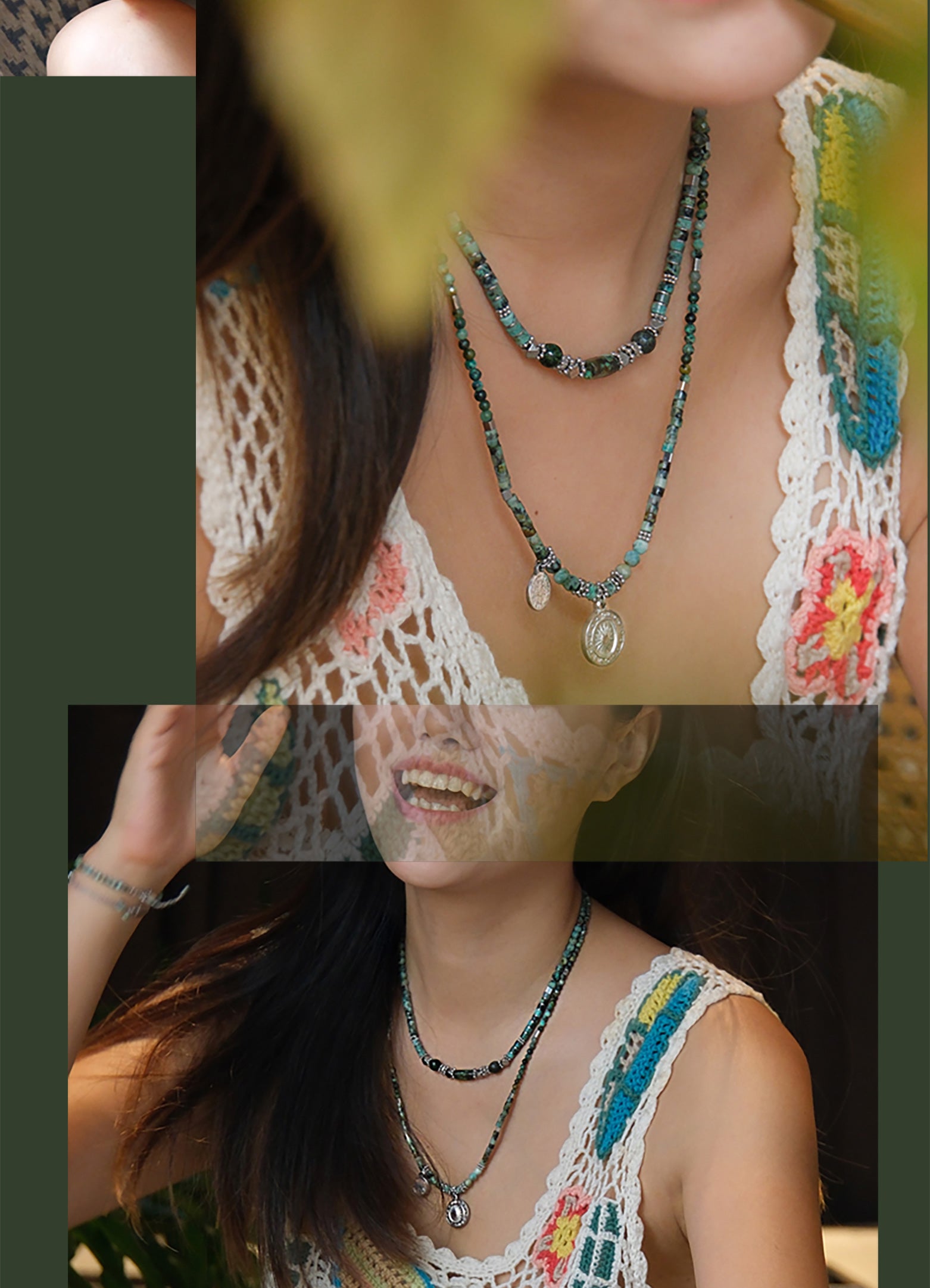 - The centerpiece of this captivating necklace is a large, vivid green pendant. The gemstone, carefully selected for its intense color and remarkable clarity, resembles a deep, mysterious forest pool. Its rich, emerald - like hue is both eye - catching and soothing, drawing you in with its allure. The pendant is expertly cut and faceted, enhancing its natural sparkle and allowing it to catch and reflect light from every angle. When worn, it seems to glow with an otherworldly radiance, as if it holds the secrets of a hidden, magical realm.