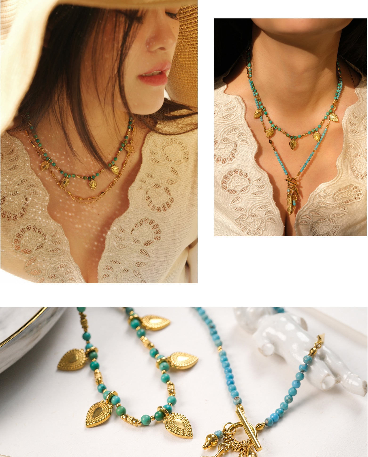 • When you wear the Basket of gold leaf necklace, you exude an air of sophistication. It's a statement piece that draws eyes and admiration wherever you go. The warm, golden glow of the necklace enhances your complexion and adds a touch of radiance to your overall look. Whether you're attending a glamorous party, a business meeting, or a romantic dinner, this necklace is the perfect accessory to complete your ensemble.