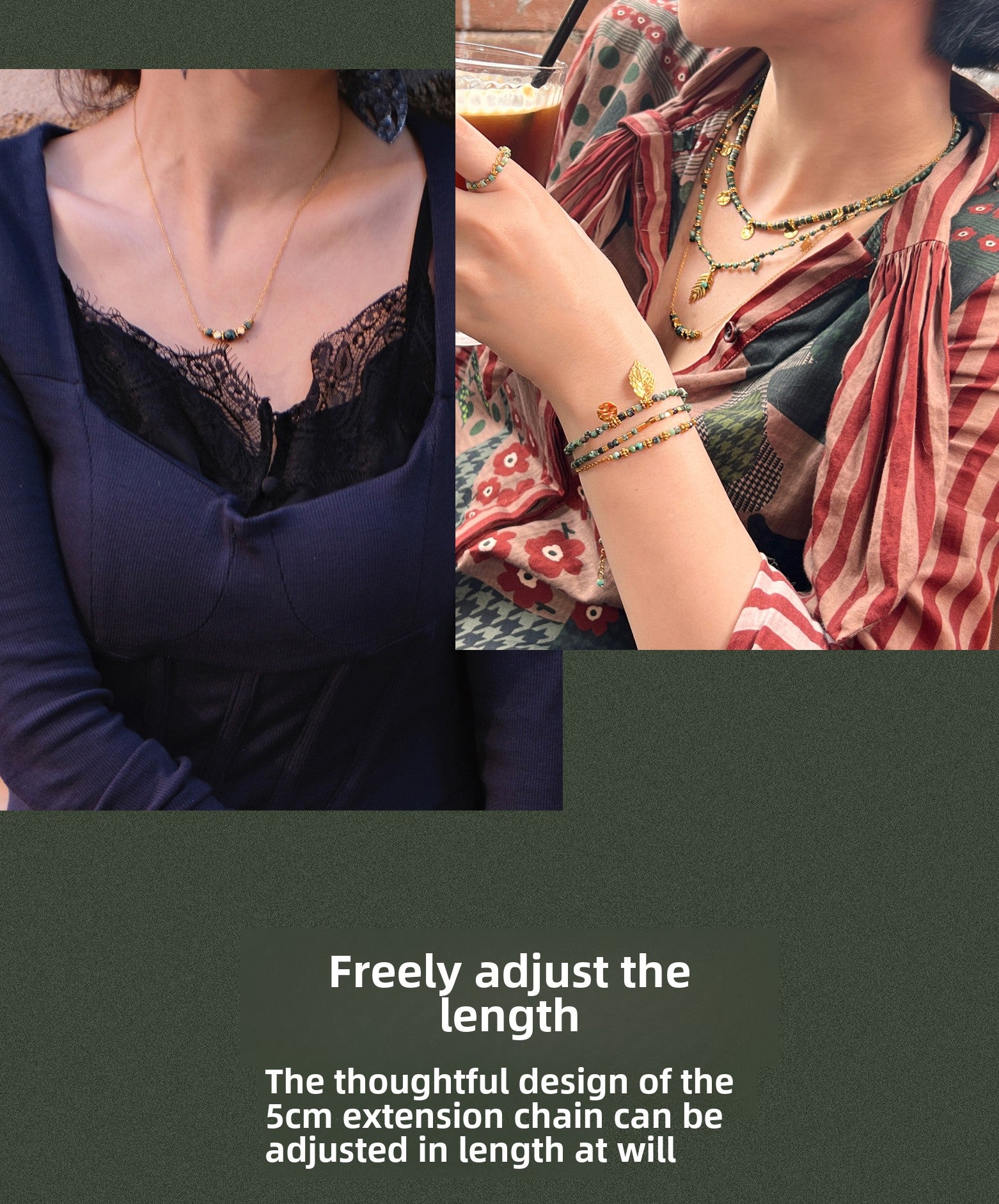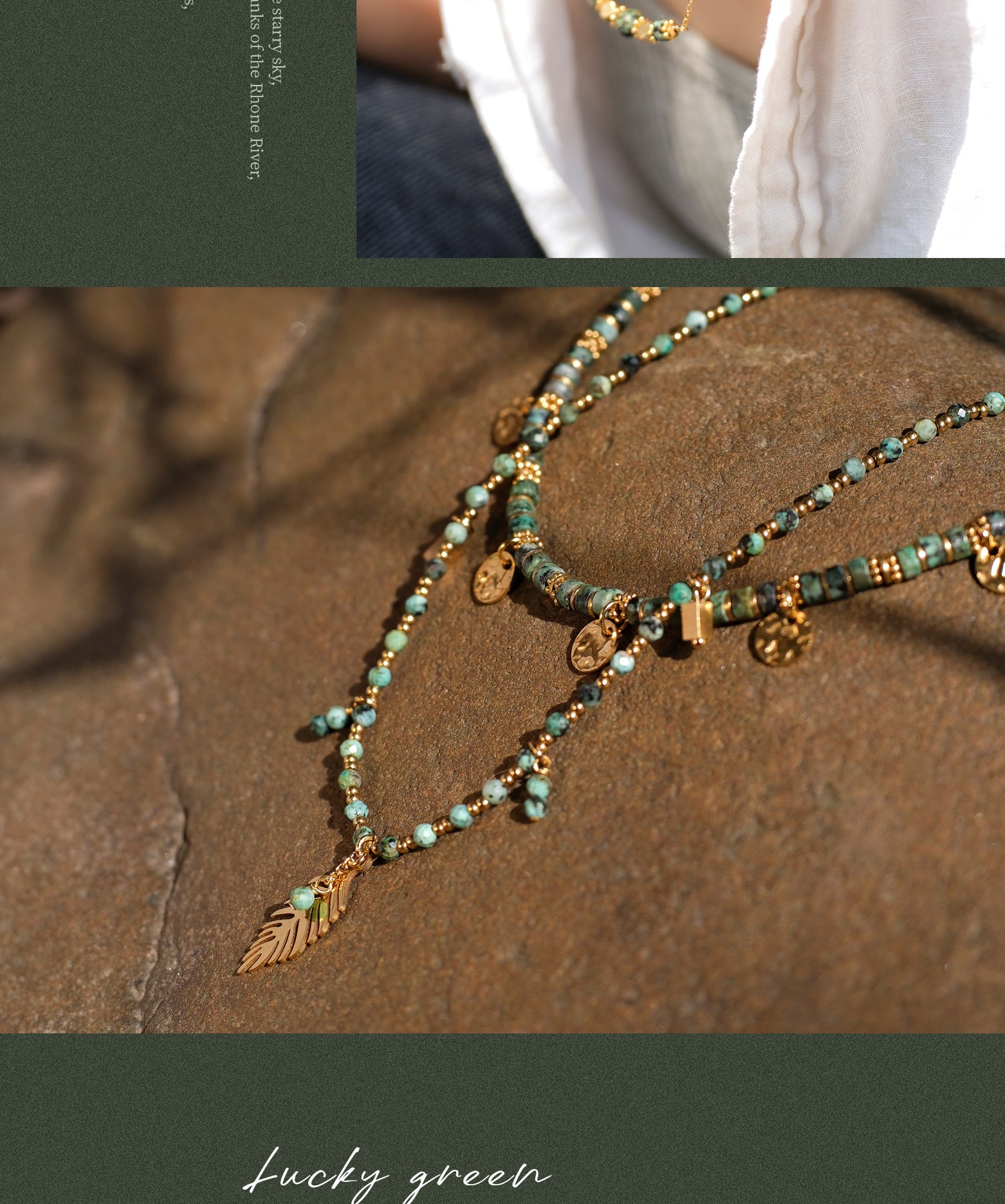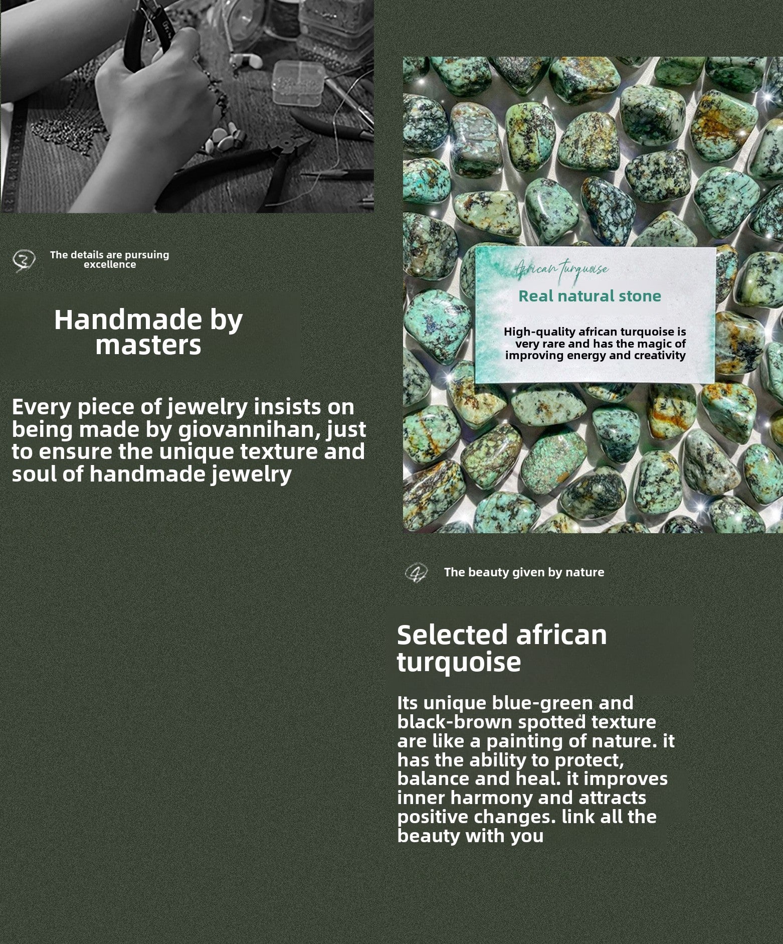 - Turquoise has been prized for centuries for its beauty and symbolic meaning. Our green turquoise stones are sourced from the finest mines, guaranteeing their authenticity and quality. Turquoise is not only a stunning gemstone but also believed to have healing properties, bringing peace and protection to the wearer. Wearing this necklace, you carry with you a piece of nature's elegance and a touch of ancient wisdom.