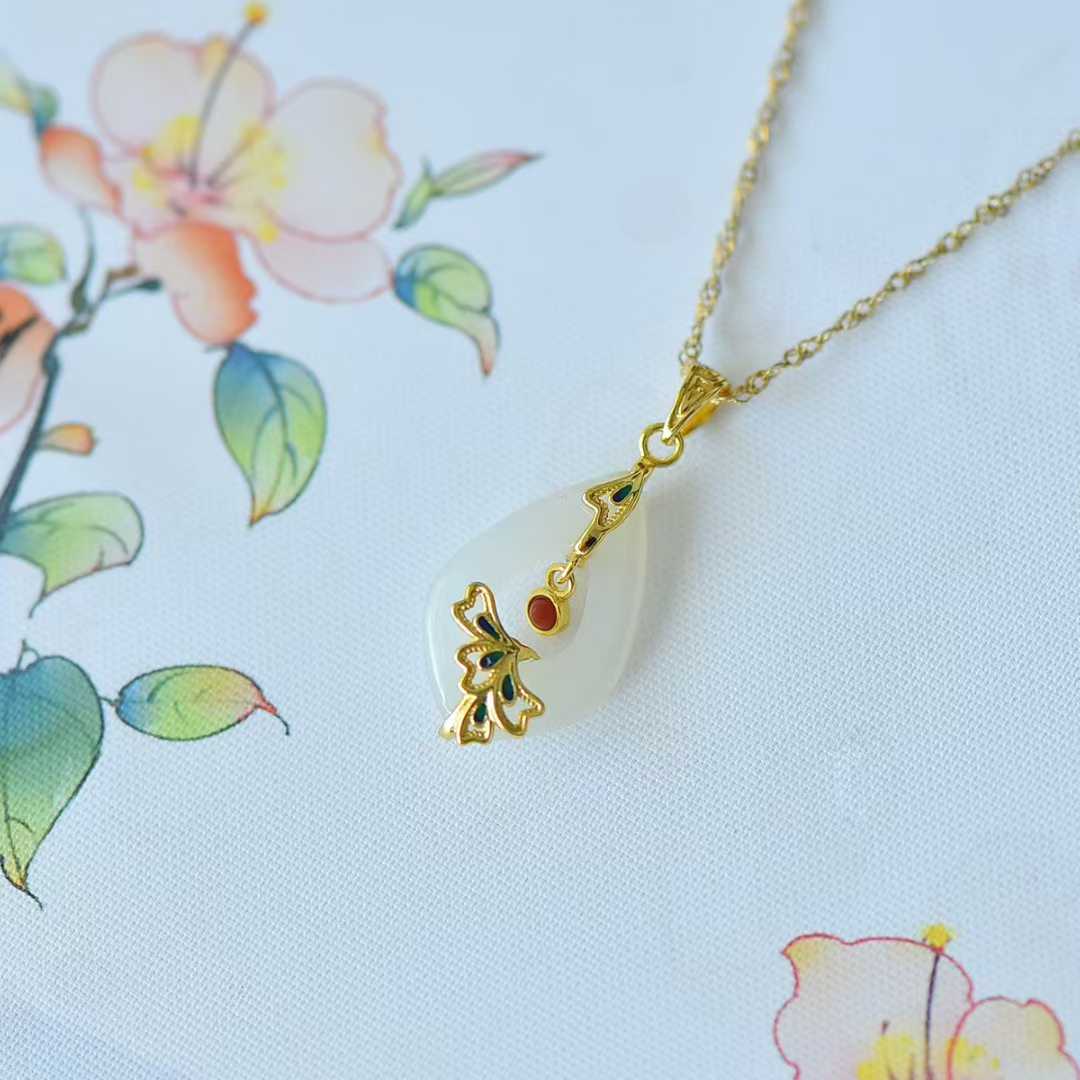 This exquisite pendant merges delicate craftsmanship with symbolic beauty, crafted from 925 sterling silver and inlaid with premium Hetian nephrite.Its design centers on two complementary motifs: a hollowed-out water drop—representing purity and fluid grace—and a stylized phoenix—a universal symbol of rebirth and nobility. The smooth Hetian nephrite cabochon (typically in soft white or pale lavender, with a creamy luster) is set within the silver water drop frame, while the phoenix is sculpted in intricate detail around or alongside the drop, its wings and tail featuring fine silver filigree work that enhances the hollowed-out design’ s airiness.