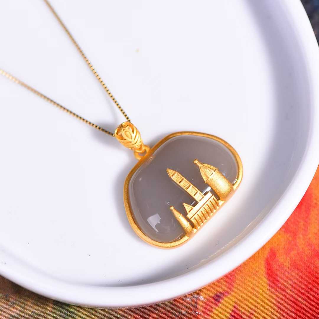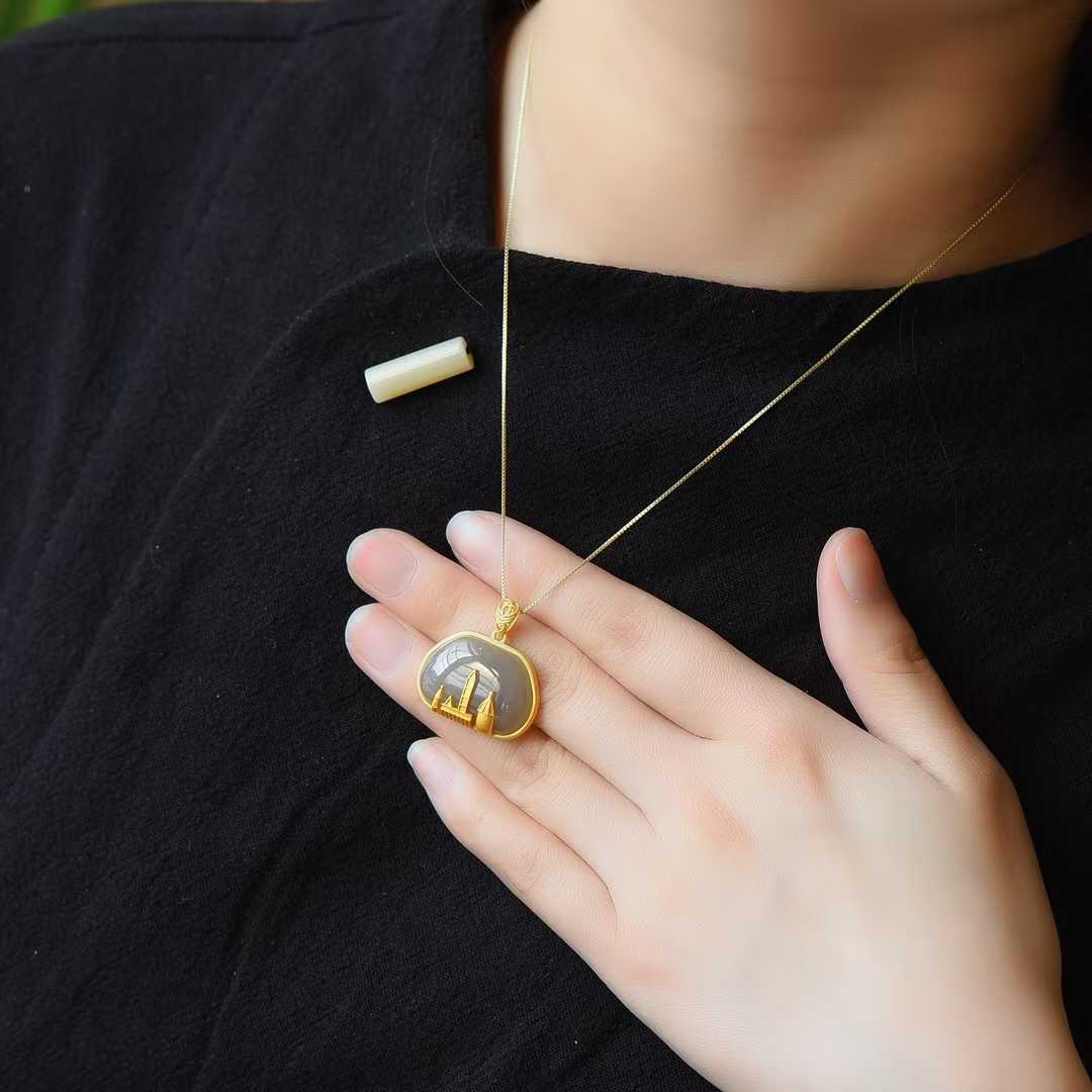 This exquisite and serene pendant merges traditional craftsmanship with unique color charm, crafted from ancient craft silver and set with premium smoky purple Hetian nephrite.Its core design highlights two harmonious elements—ancient craft silver (embodying rustic elegance and cultural heritage) and smoky purple Hetian nephrite (exuding mysterious tranquility with soft purple tones)—creating a piece that balances timeless heritage with understated luxury.