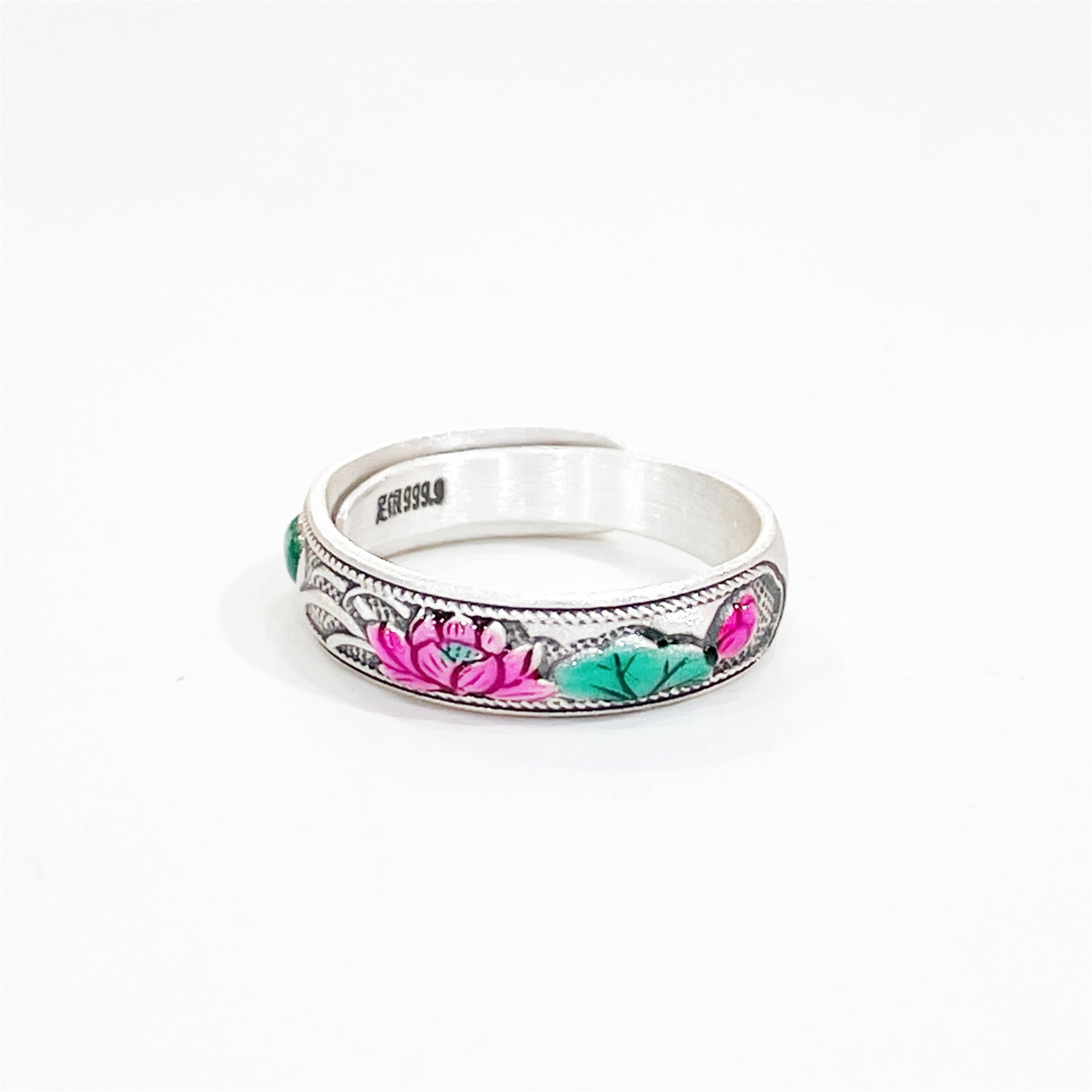 - Whether you're looking for a special gift for a loved one or a treat for yourself, the Enamel Bamboo Leaf and Peach Flower Sterling Silver Ring is sure to impress. It's perfect for any occasion, from a casual day out to a formal event.