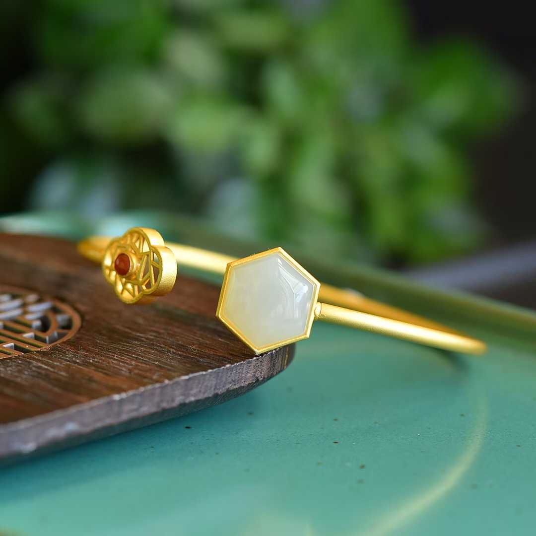 This elegant and culturally rich bracelet merges traditional Chinese architectural aesthetics with refined jewelry craftsmanship, crafted from S925 sterling silver and premium Hetian nephrite, featuring the iconic "Begonia Flower Window" motif.Its core design integrates four harmonious elements—Hetian nephrite’s warm tranquility, Begonia Flower’s romantic symbolism, ancient window lattice’s cultural charm, and S925 silver’s durable artistry—creating a piece that balances classical elegance with modern wearability