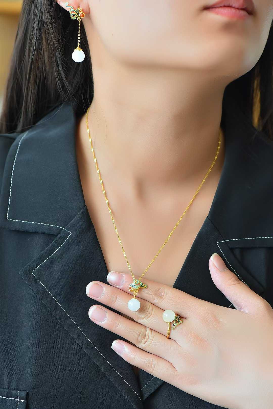 S925 Silver Inlaid Nephrite "Complete Perfection" Enamel Jewelry Set