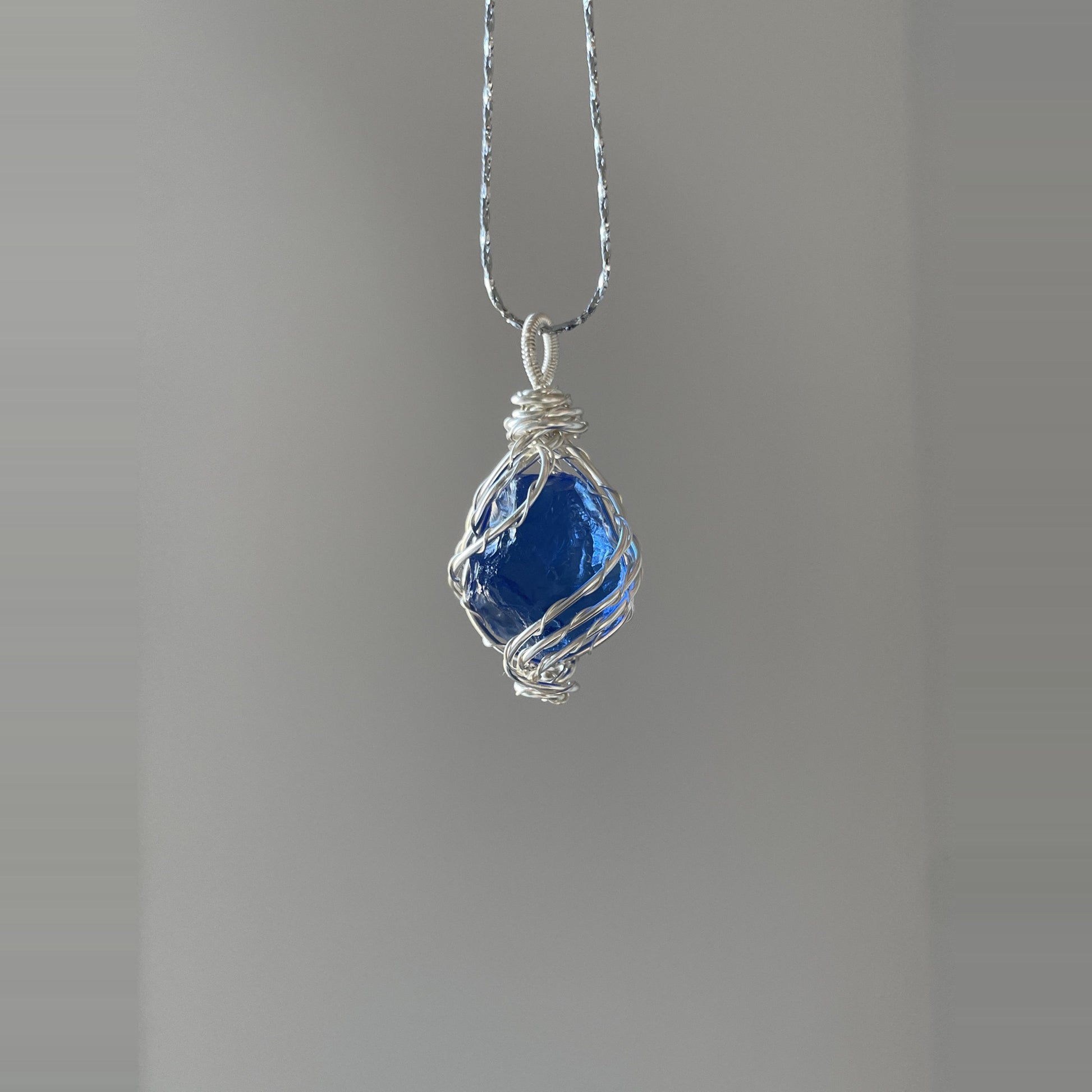 Wrapped blue protein crystal pendant necklace exquisite ornaments