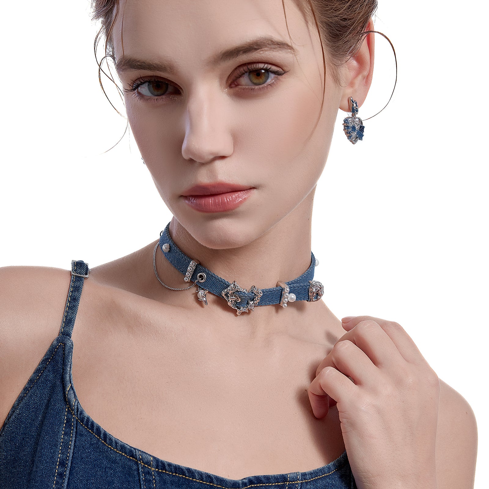 Choker Heart-shaped Denim Collar Chain Necklaces