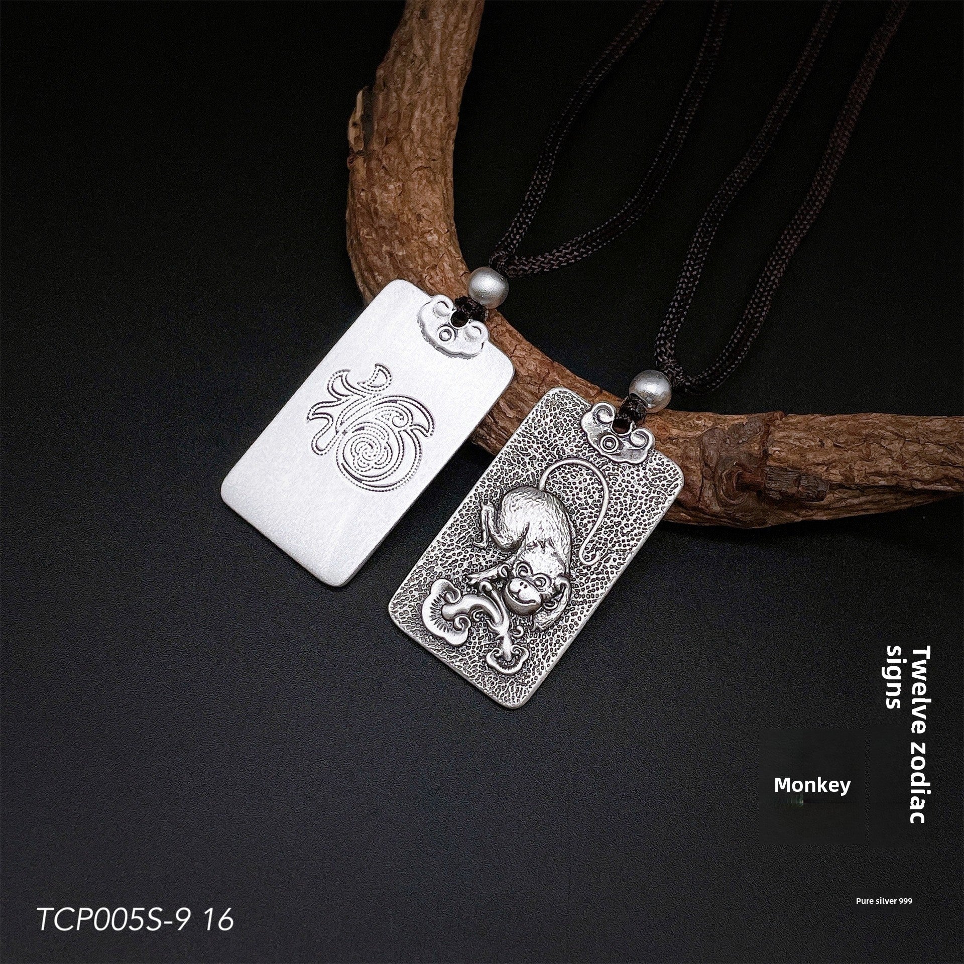 Engraved Chinese Zodiac Sterling Silver Pendant Necklace