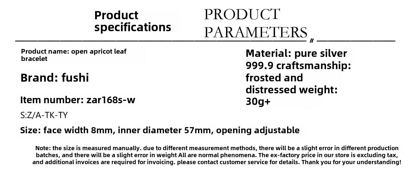 - This exquisite piece is a true work of art. Crafted from high-quality sterling silver, it features a delicate frosted finish that gives it a soft and luxurious look. The apricot leaf design is inspired by the beauty of nature and traditional Chinese motifs, adding a touch of charm and sophistication.